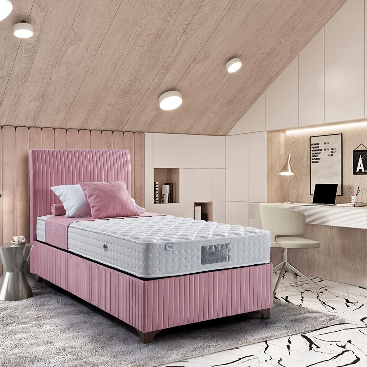 Розово тапицирано легло с табла на вертикални линии-единична база, интериор