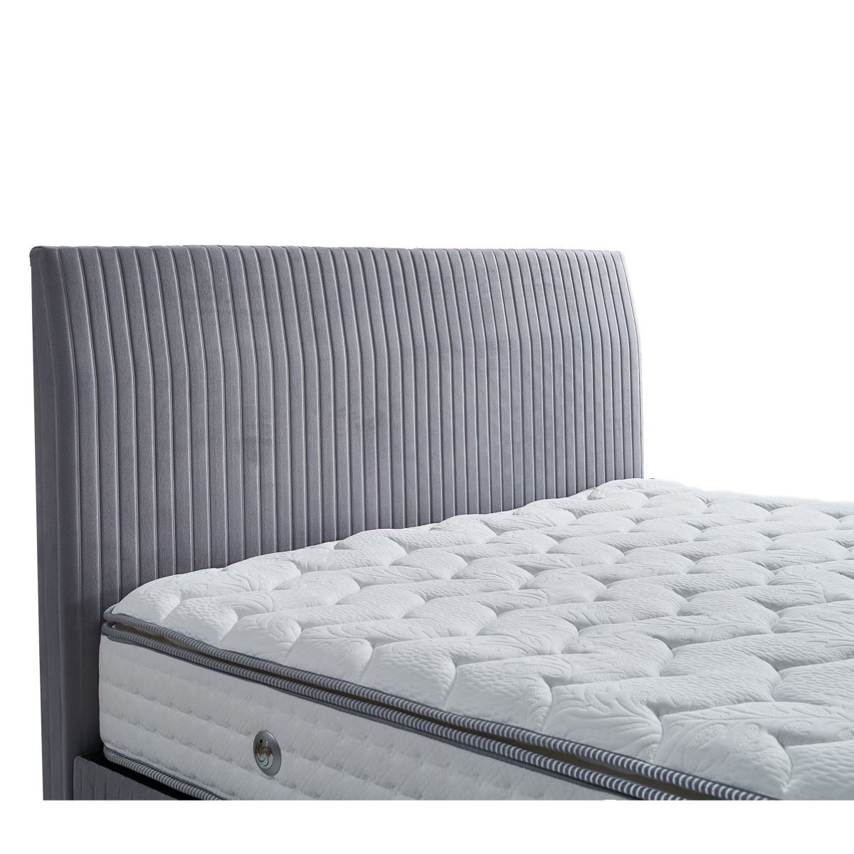 Сиво тапицирано легло с табла на вертикални линии-детайли