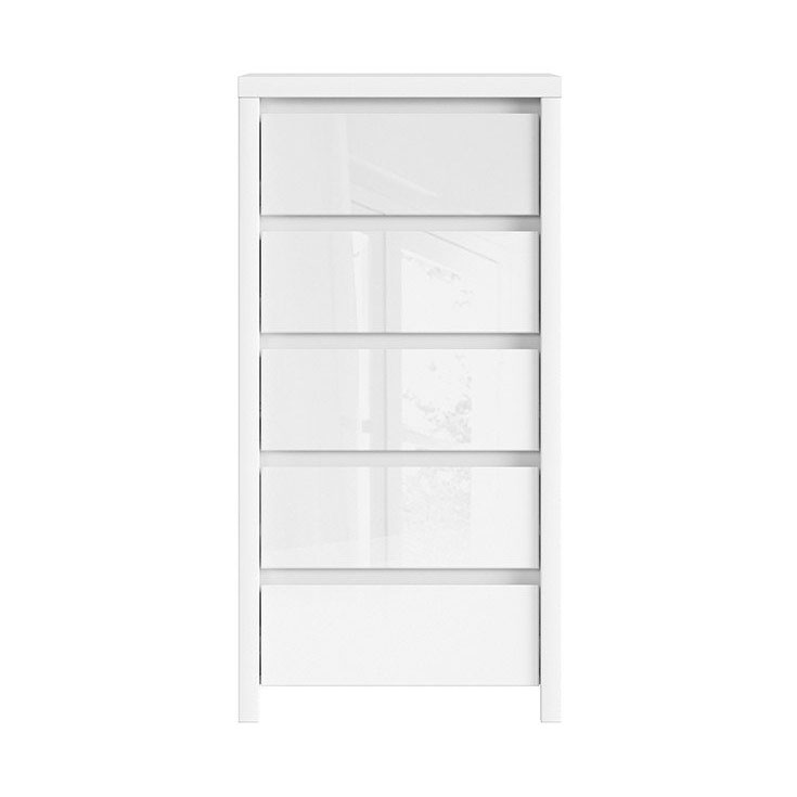 Бял скрин от ПДЧ с пет чекмеджета с матирана или гланцирана повърхност, модулна система Каспиан Бял.