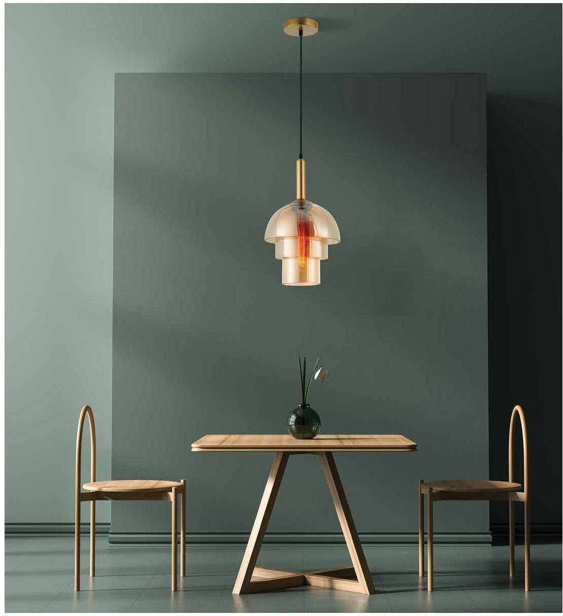 Вариант в цвят шампанско – ∅ 25 х 42 см, основа – ∅ 10 х 2 см, наличен кабел – 200 см - Фасонка: Е27