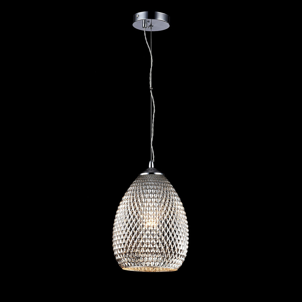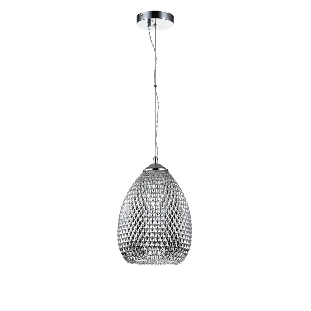 Стъклен пендел с хромирана метална основа и текстурирано релефно тяло в сив цвят Maytoni, серия Moreno.
