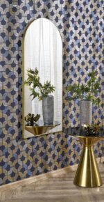 Красиво стенно огледало, изработено с подложка от МДФ и алуминиева рамка в златист или черен цвят.