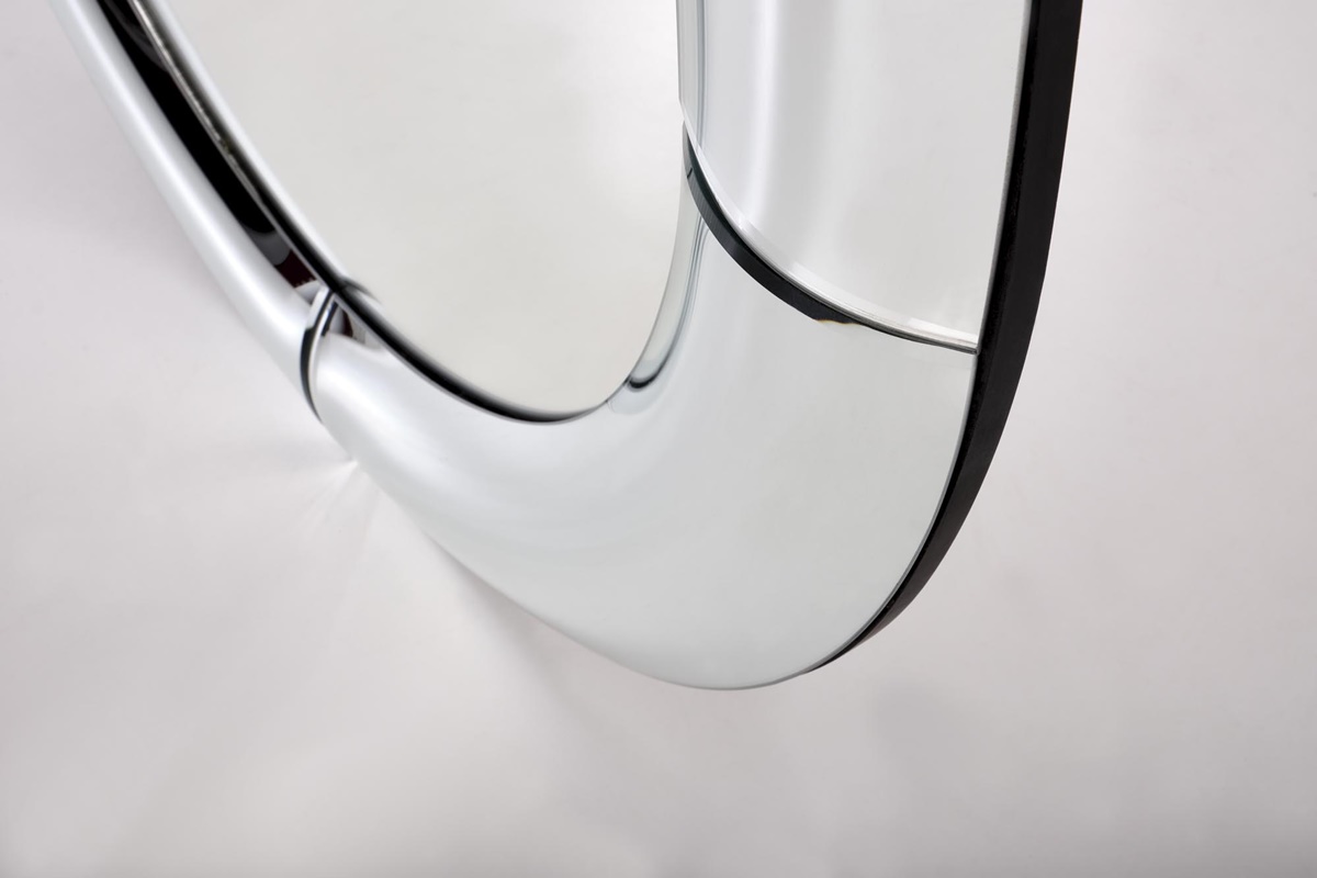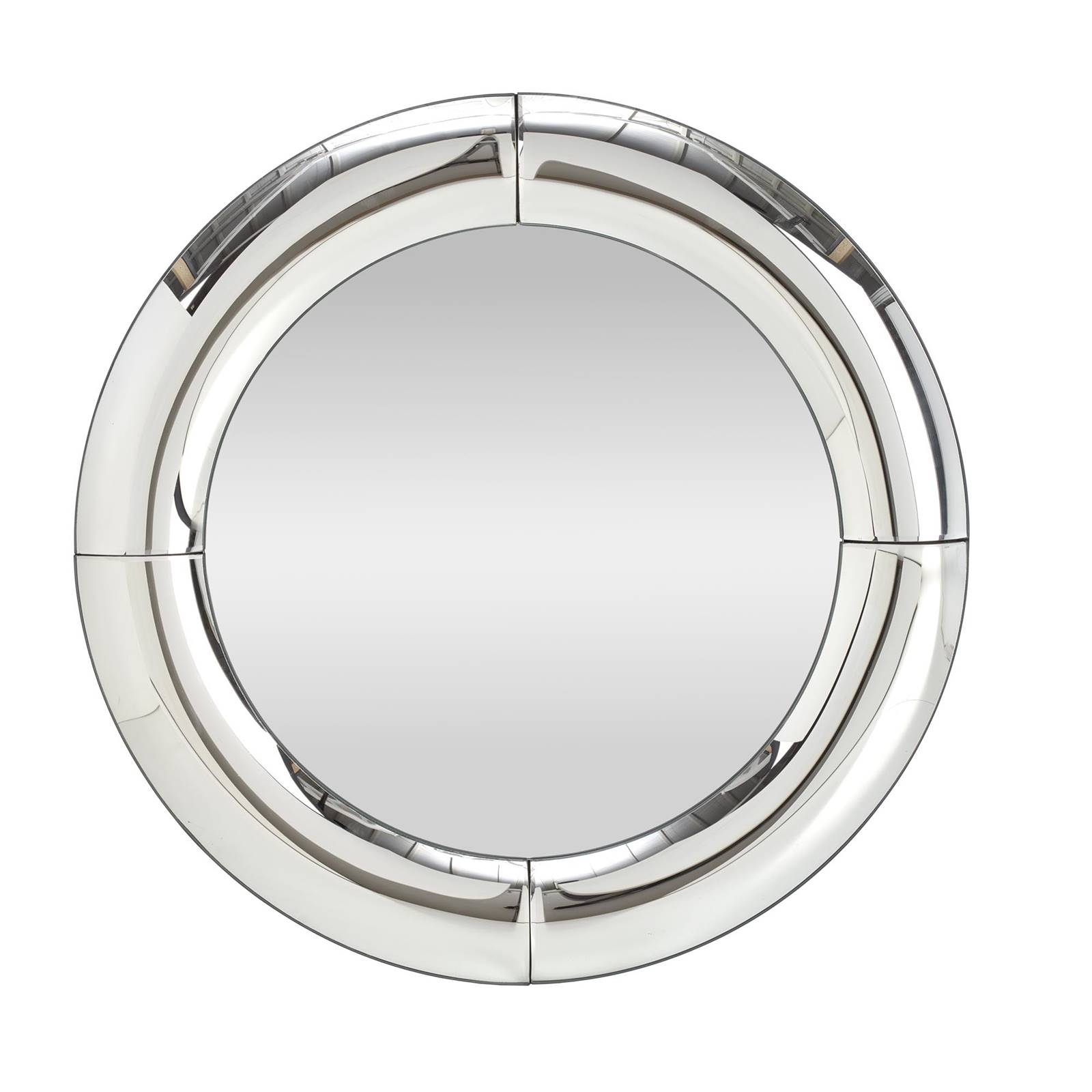 Сребристо стенно огледало с кръгла форма и рамка, изработена от МДФ.