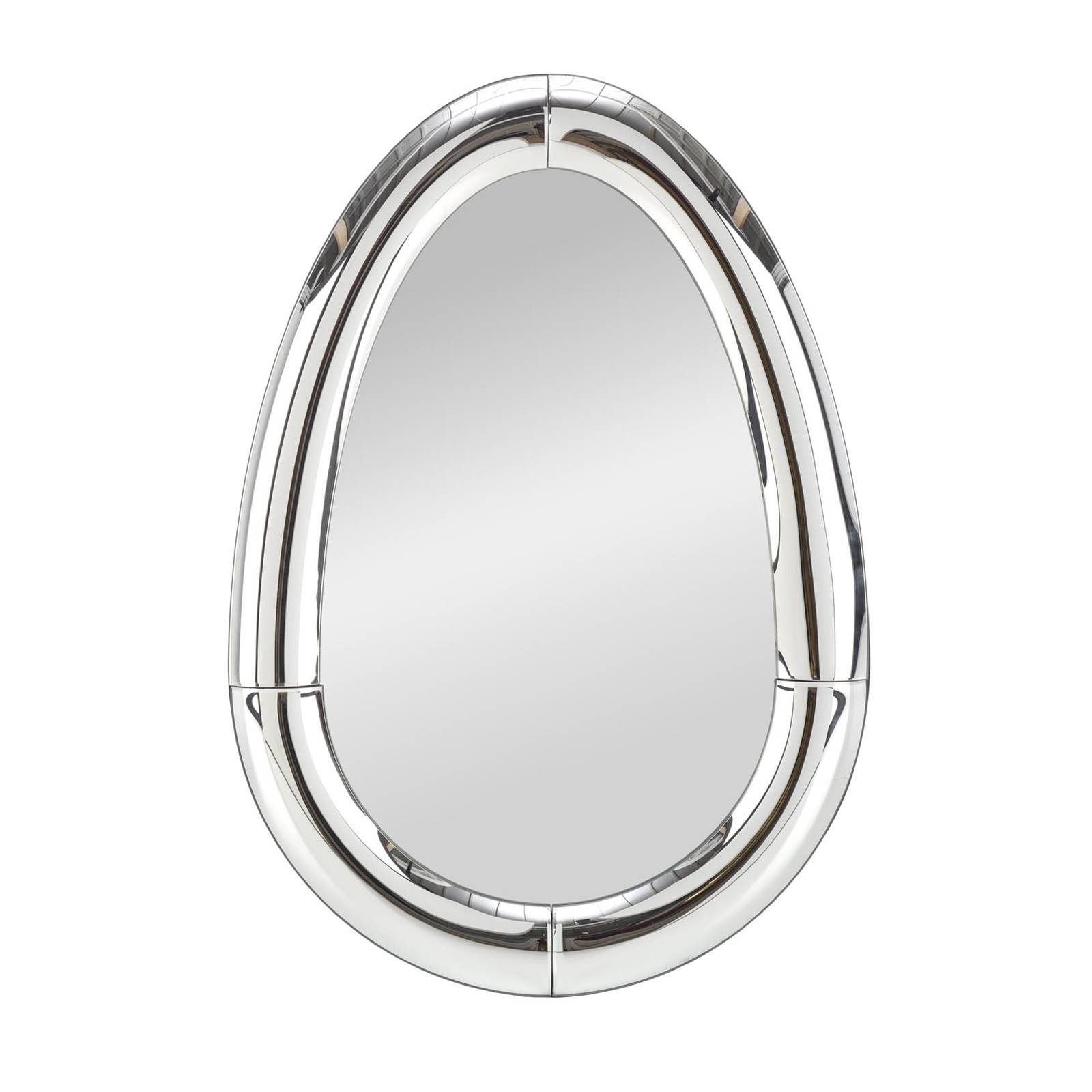 Стенно огледало с овална форма и елегантна сребриста рамка от МДФ.