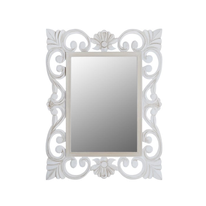 Правоъгълно стенно огледало с пищна декорация в бяло Мелани
