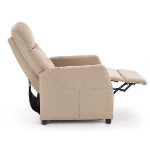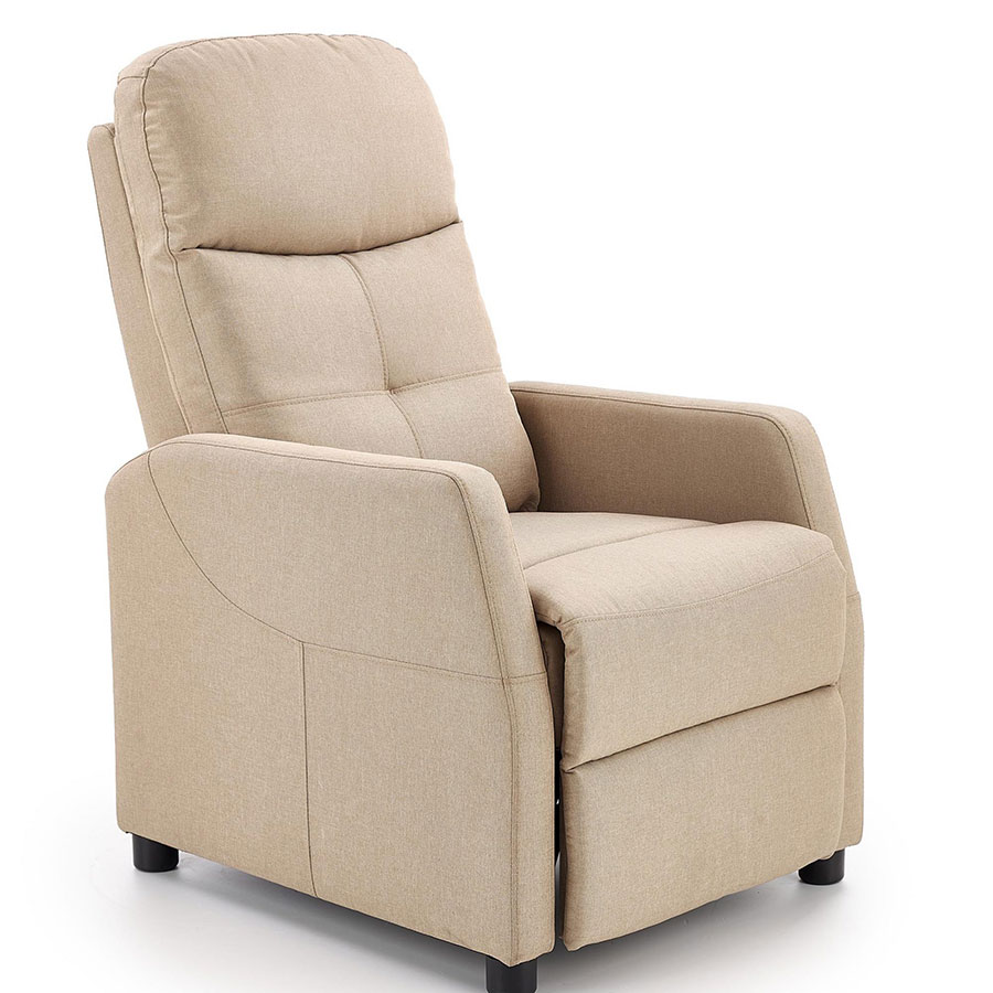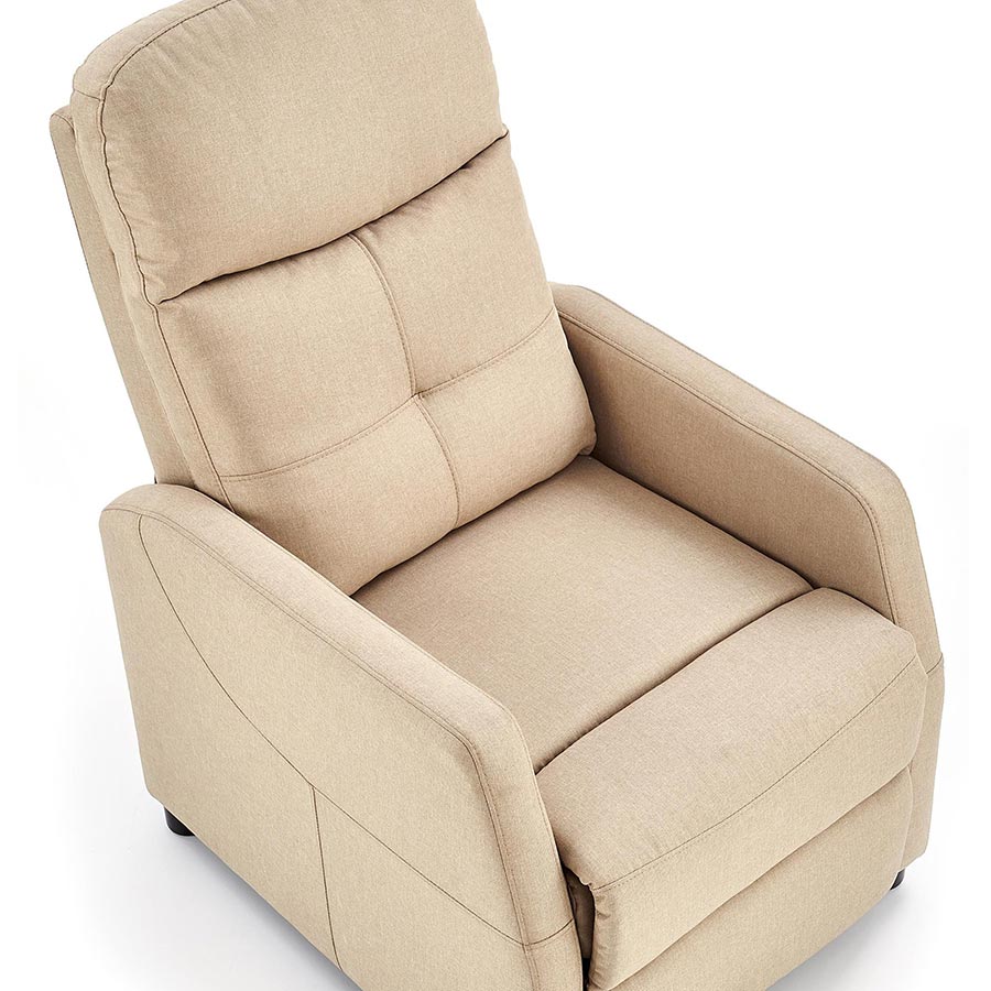 Стилен релакс фотьойл с текстилна дамаска, който се предлага в два красиви цвята – бежово и тъмносиво.