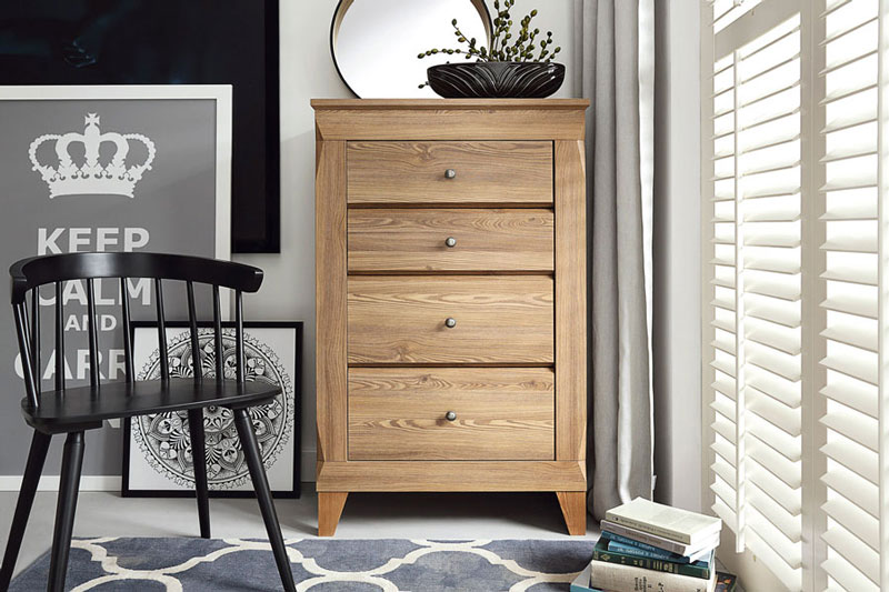 Стилен скрин с 4 чекмеджета в дървесен цвят Берген