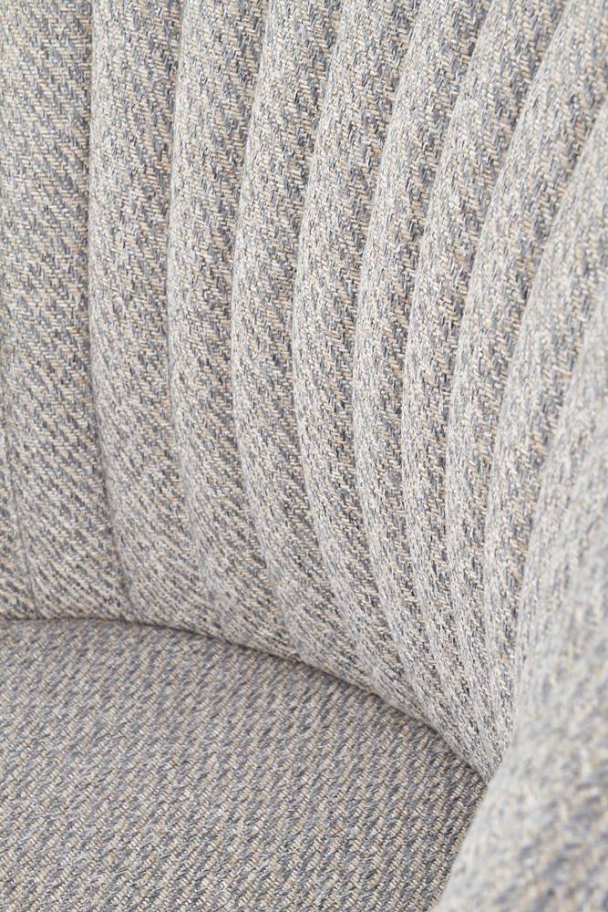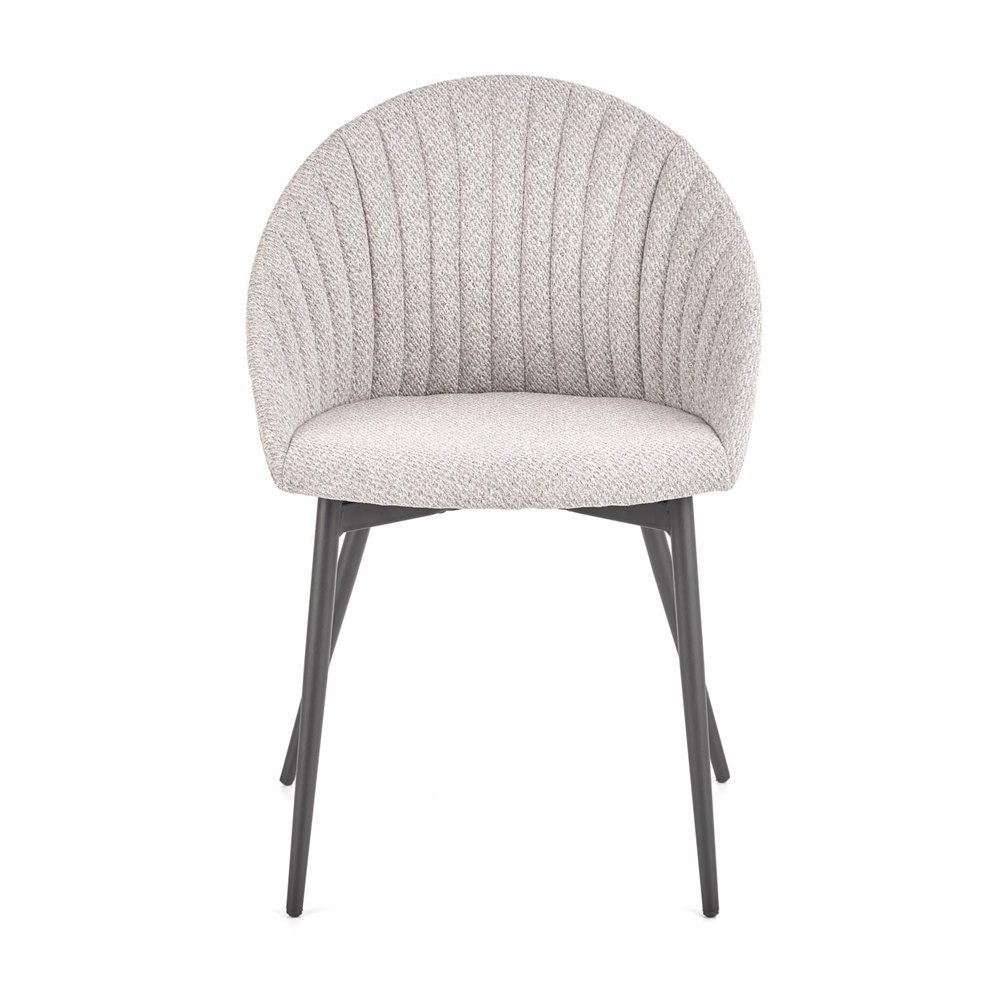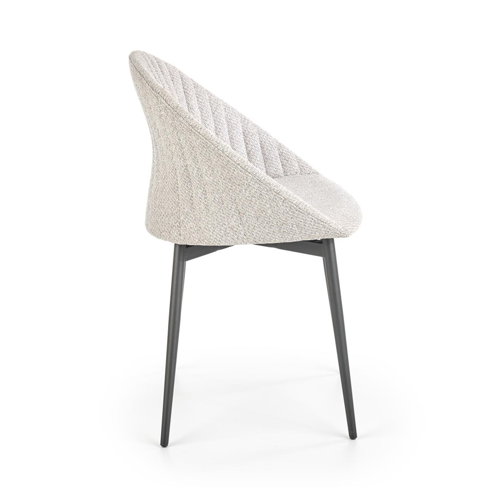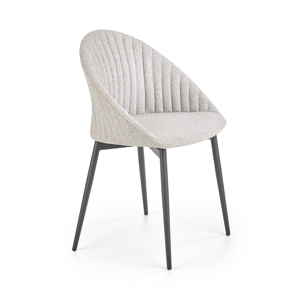 Красив трапезен стол с дамаска в светлосиво или бежово и с черни метални крака.