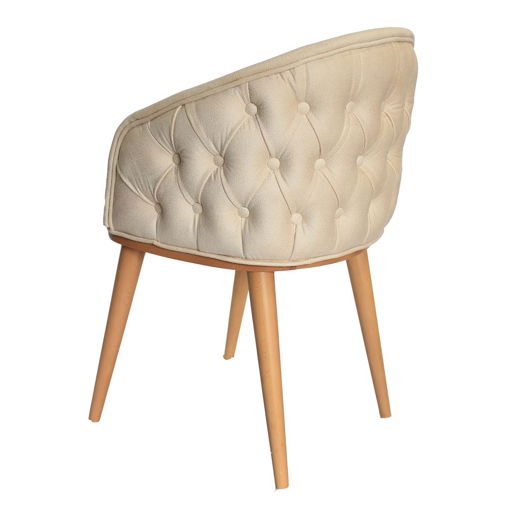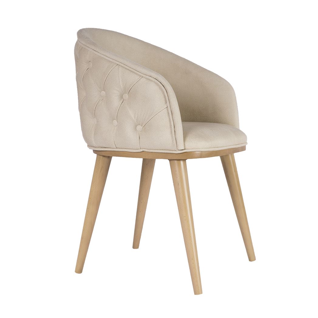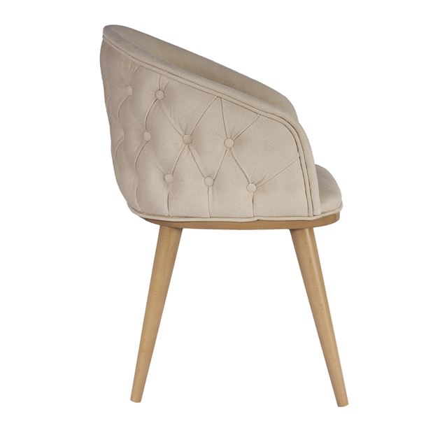 Елегантен трапезен стол с дървени крака от бук, мека на допир текстилна тапицерия в бежово и капитониран гръб.