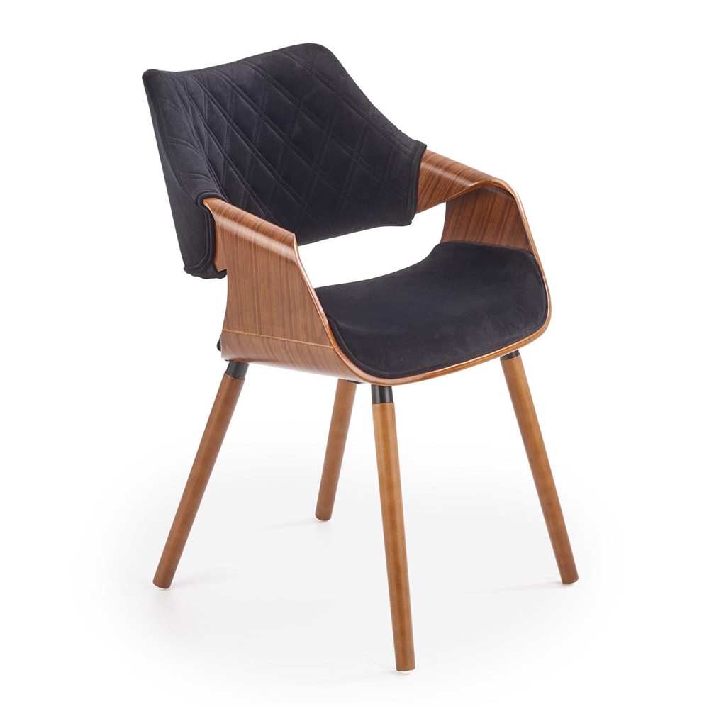 Трапезен стол с дамаска от кадифе и метални крака-черен