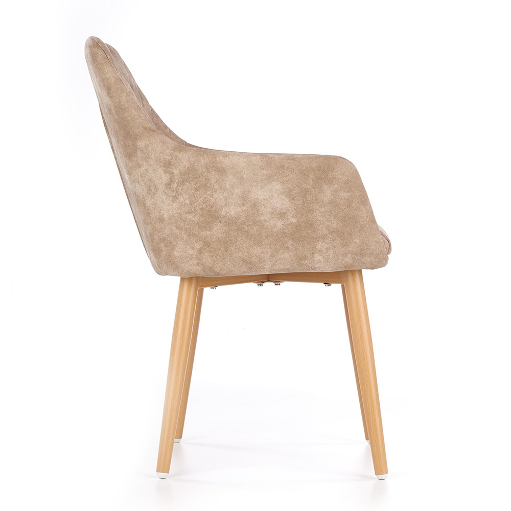 Стол с подлакътници от еко кожа с метални крака (4 цвята) - бежов детайл