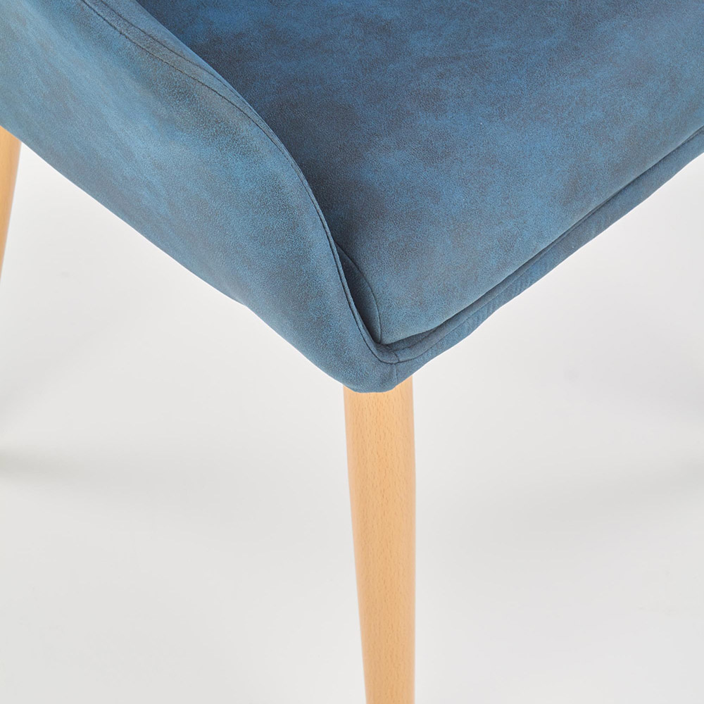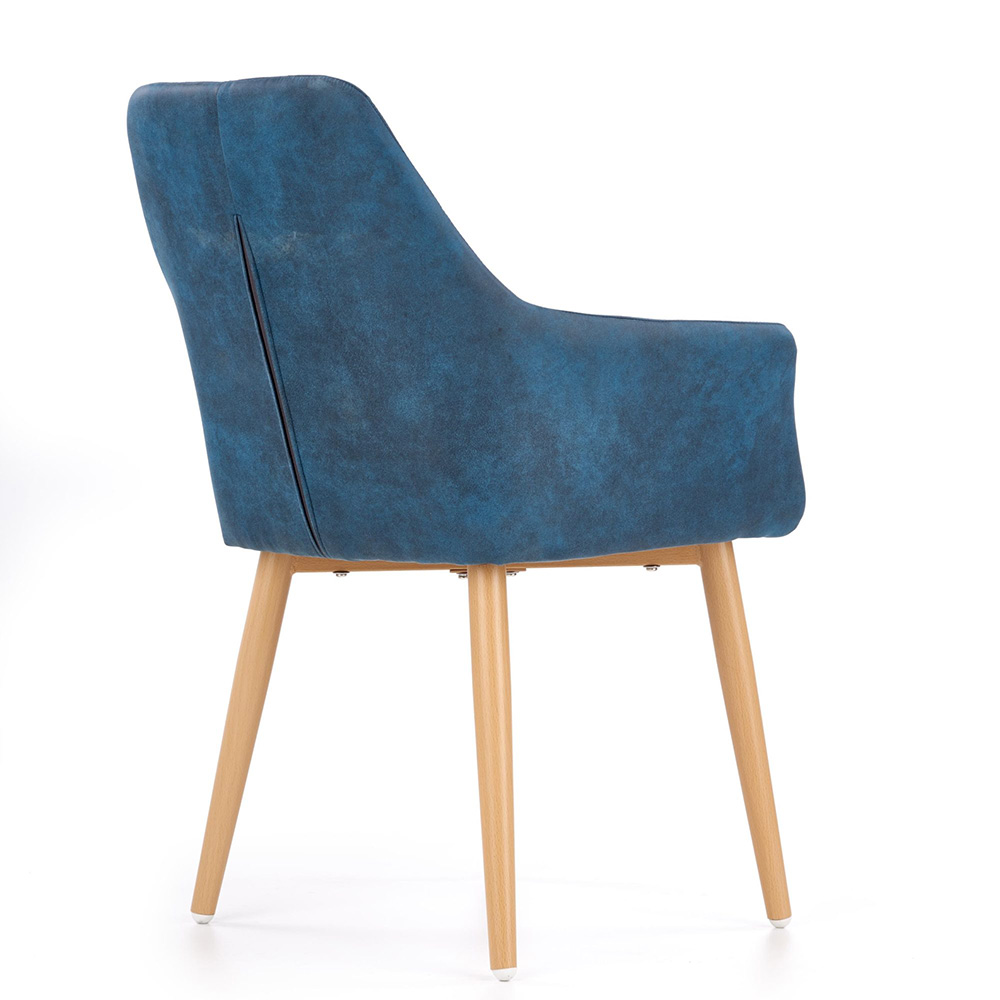 Стол с подлакътници от еко кожа с метални крака (4 цвята) -тъмносин детайл