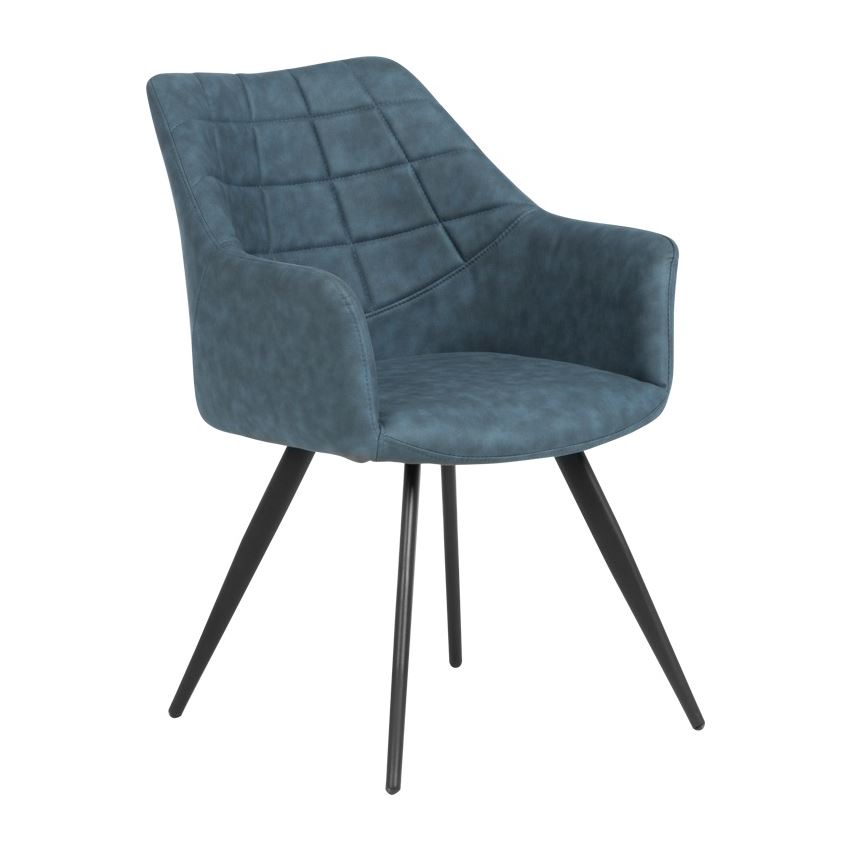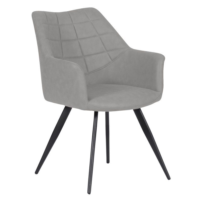 Комфортен трапезен стол с подлакътници и дамаска от текстил в три цвята – светлокафяво, светлосин и светлосив.
