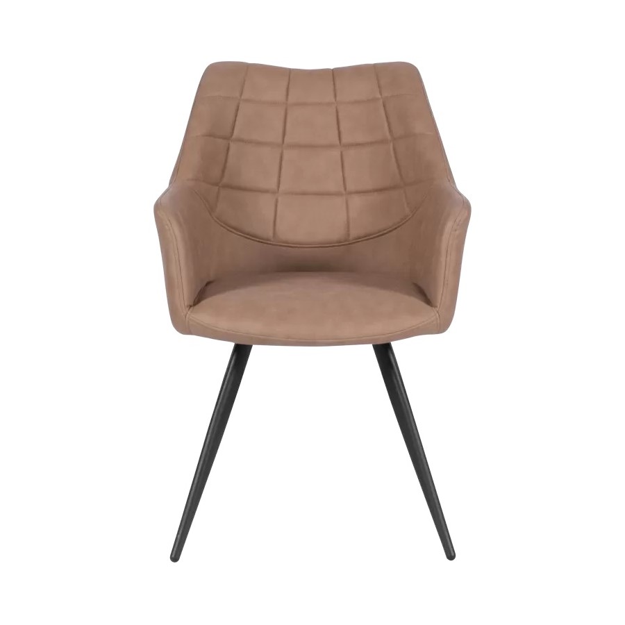 Трапезен стол с подлакътници и дамаска в светлокафяв цвят - отпред