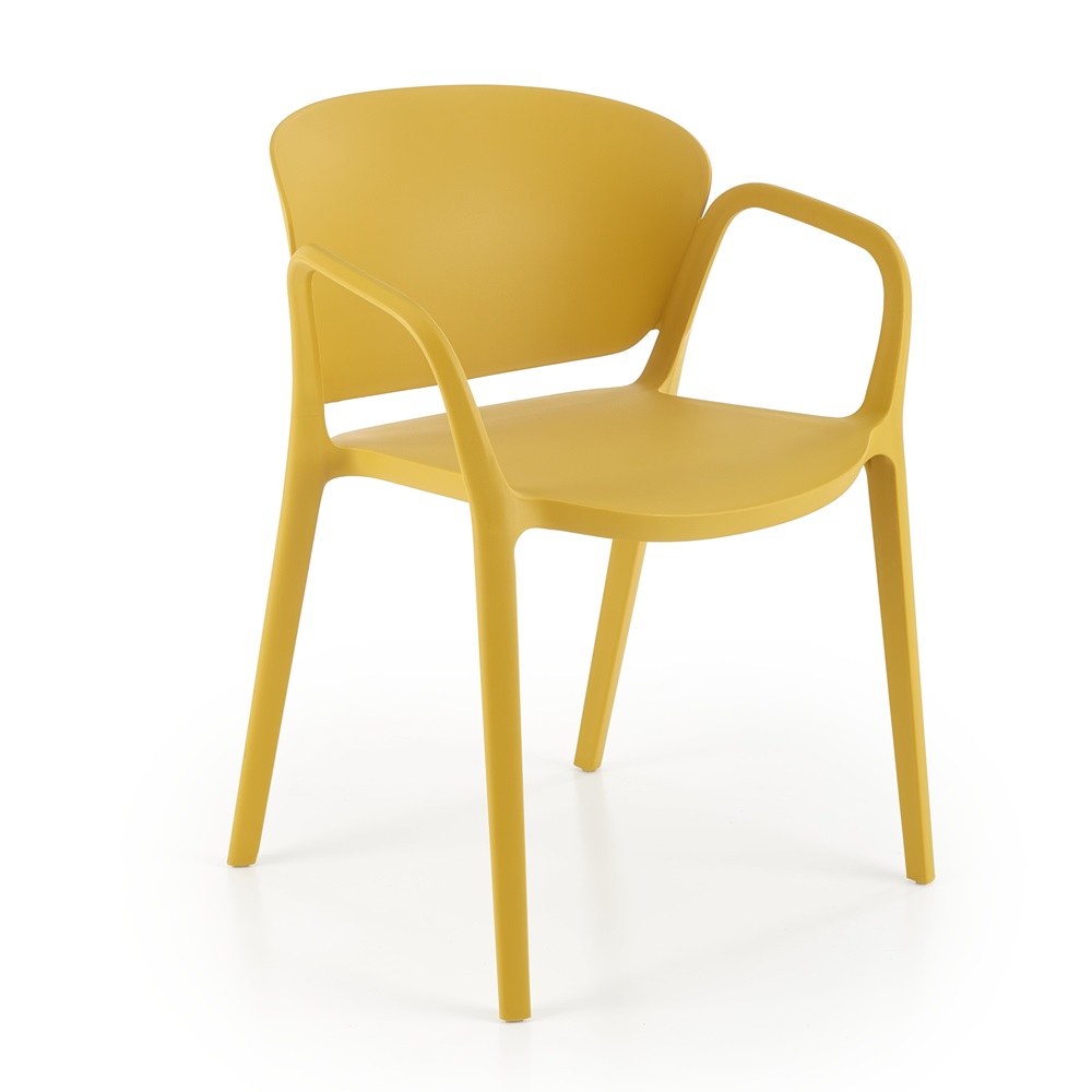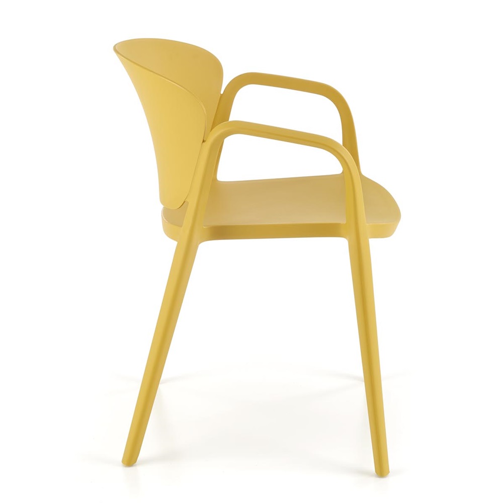 Този практичен стол от полипропилен с подлакътници се предлага в три цвята – бял, жълт и черен.