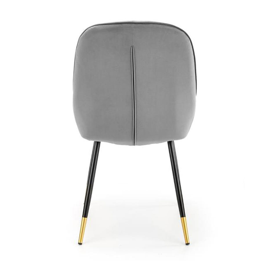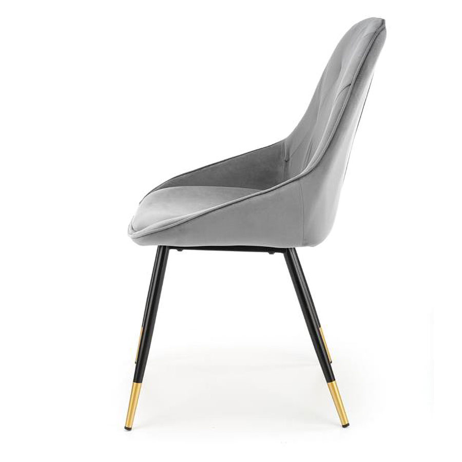 Трапезен стол с дамаска от кадифе и метални крака в черно и златисто.