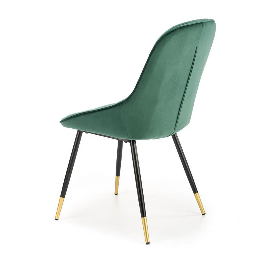 Тъмнозелен стол с крака в черно и златисто - отзад