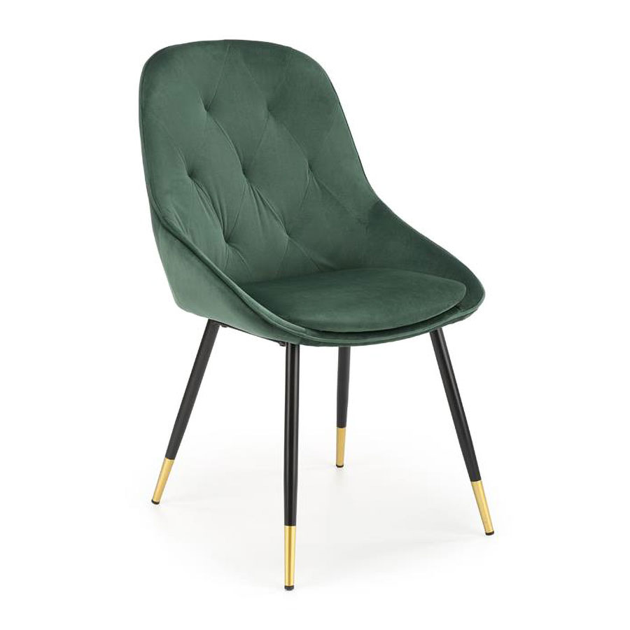 Тъмнозелен стол с крака в черно и златисто - отпред