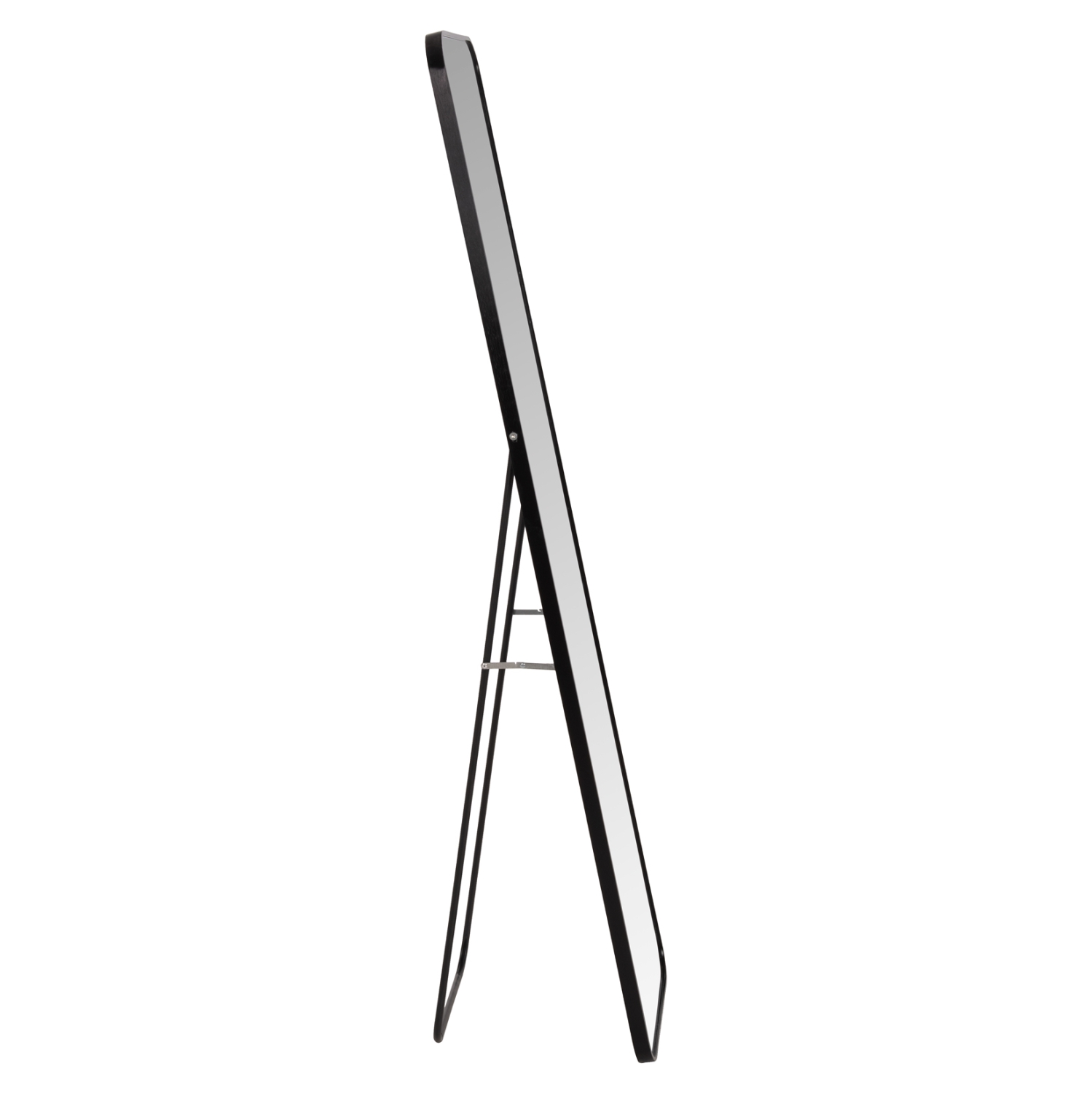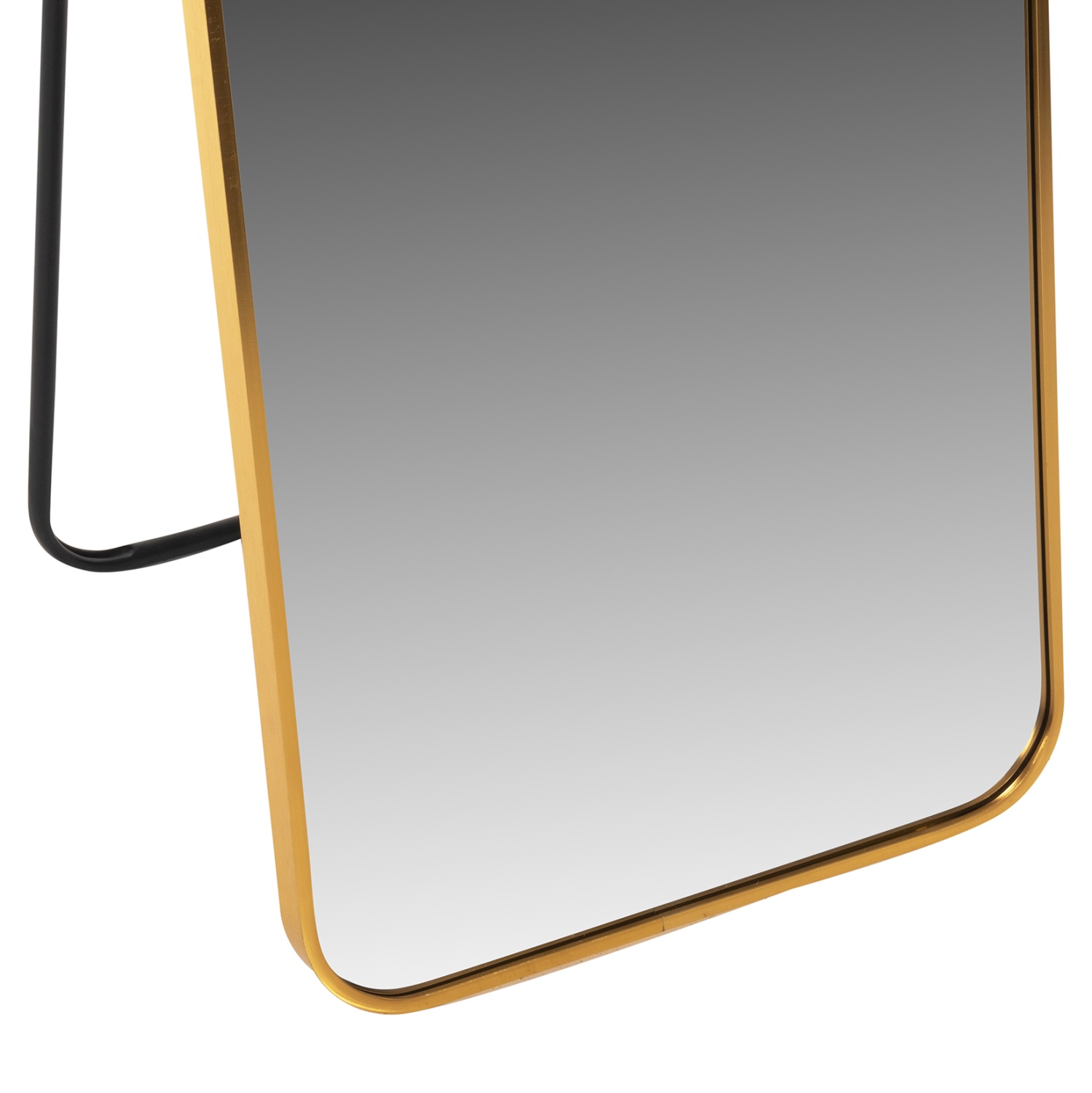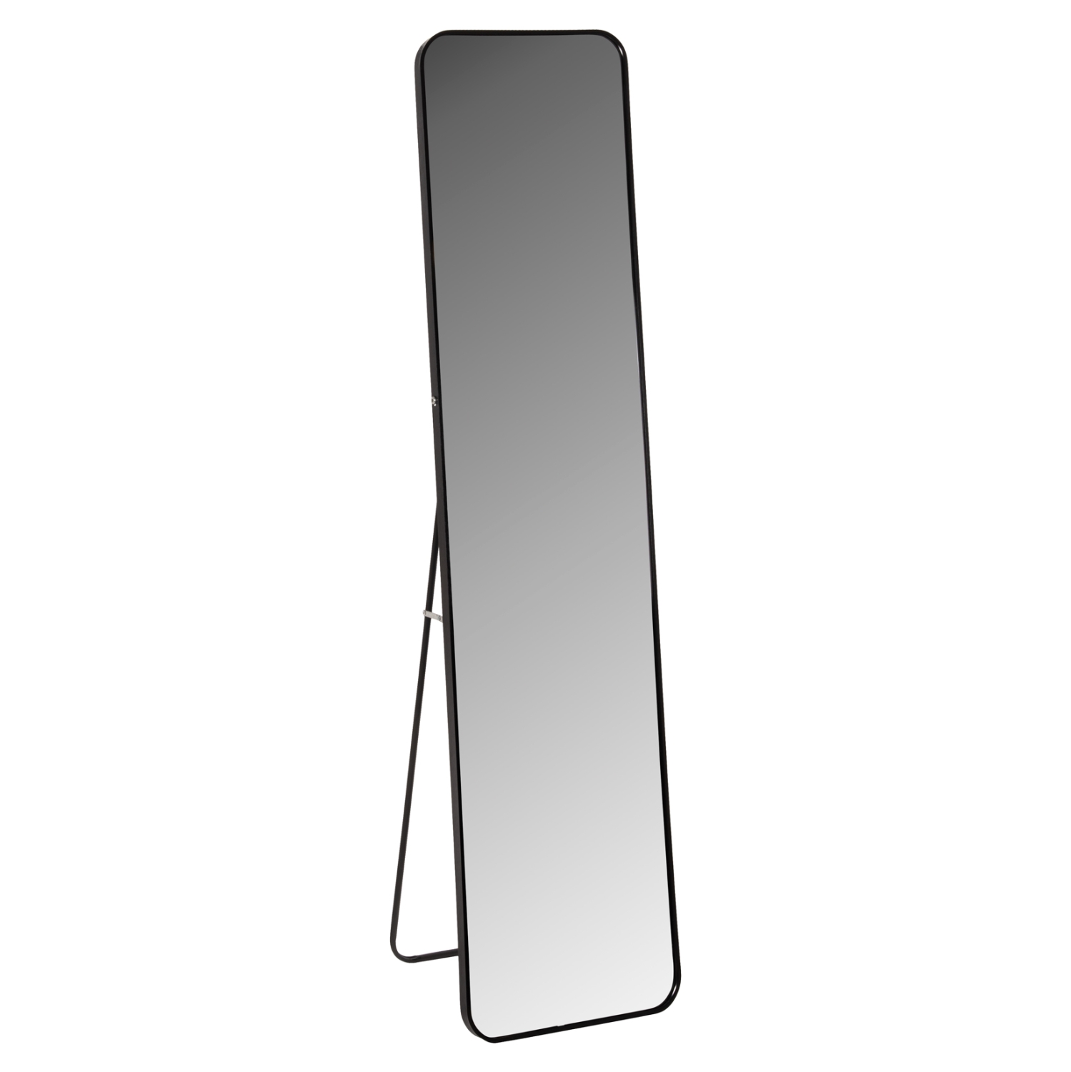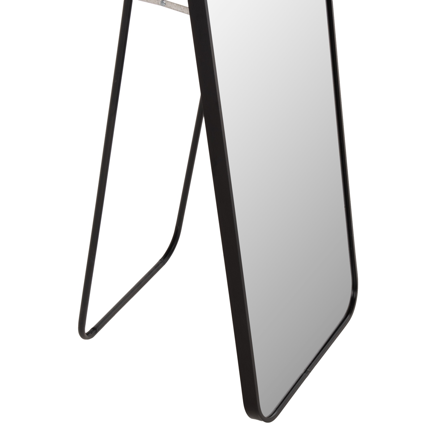 Правоъгълно свободностоящо огледало изящна метална рамка и заоблени ръбове, което придава стил и уют на всяко помещение.