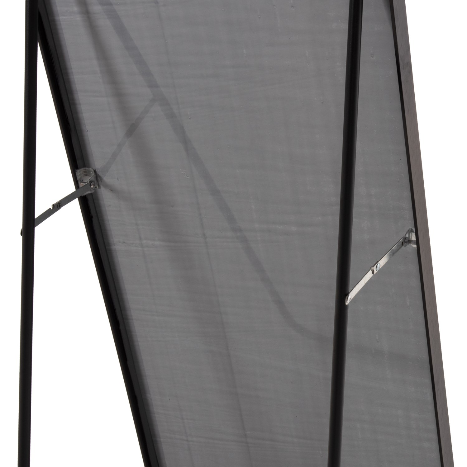 Огледалото стои стабилно на пода благодарение на сгъваемата алуминиева конструкция и може лесно да се окачи на стената.