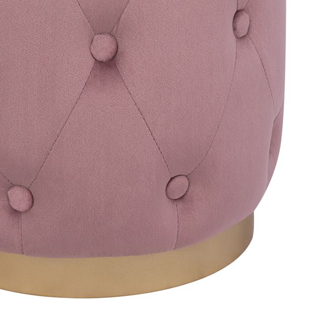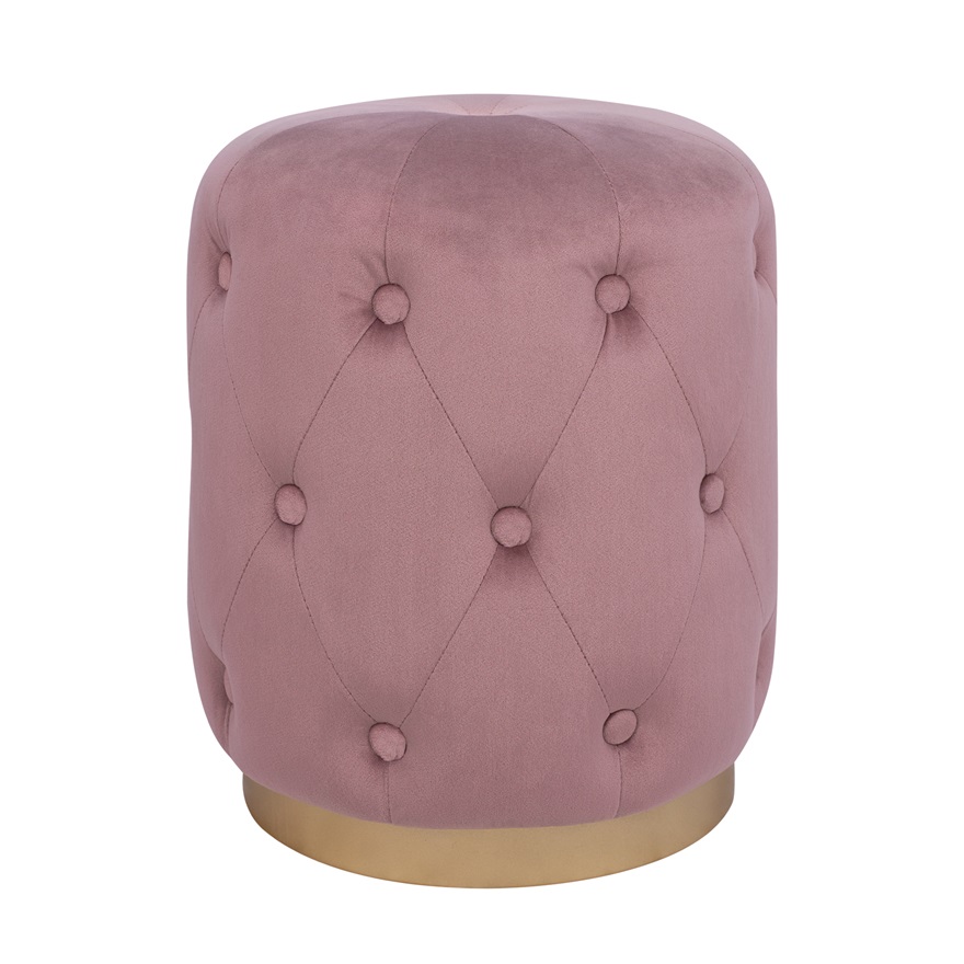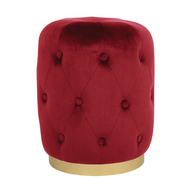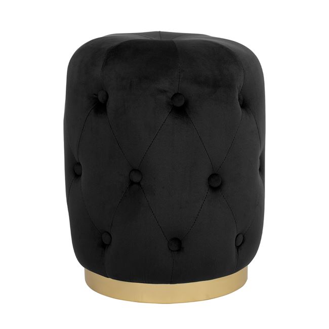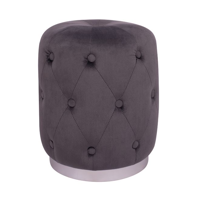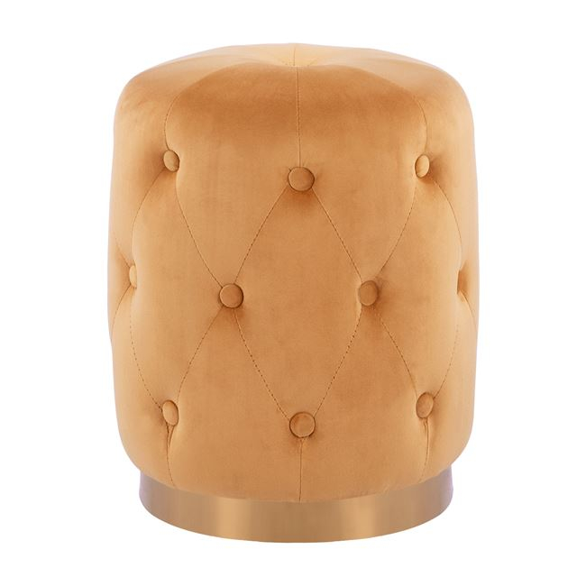 Табуретка Каси е изработена от кръгла метална основа в златисто или сребристо и кадифена дамаска с капитонаж.