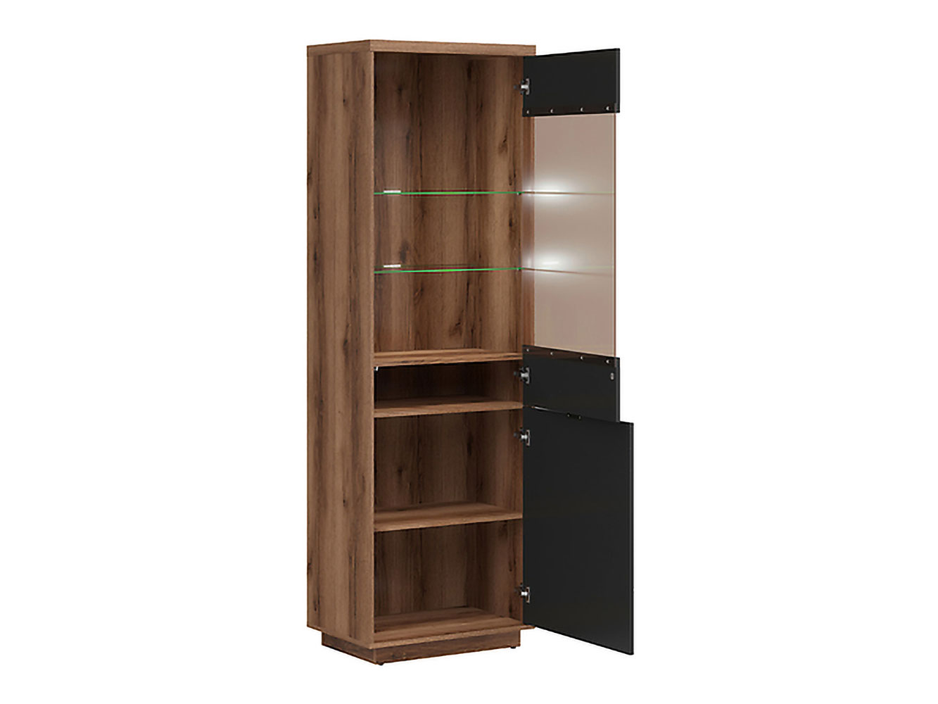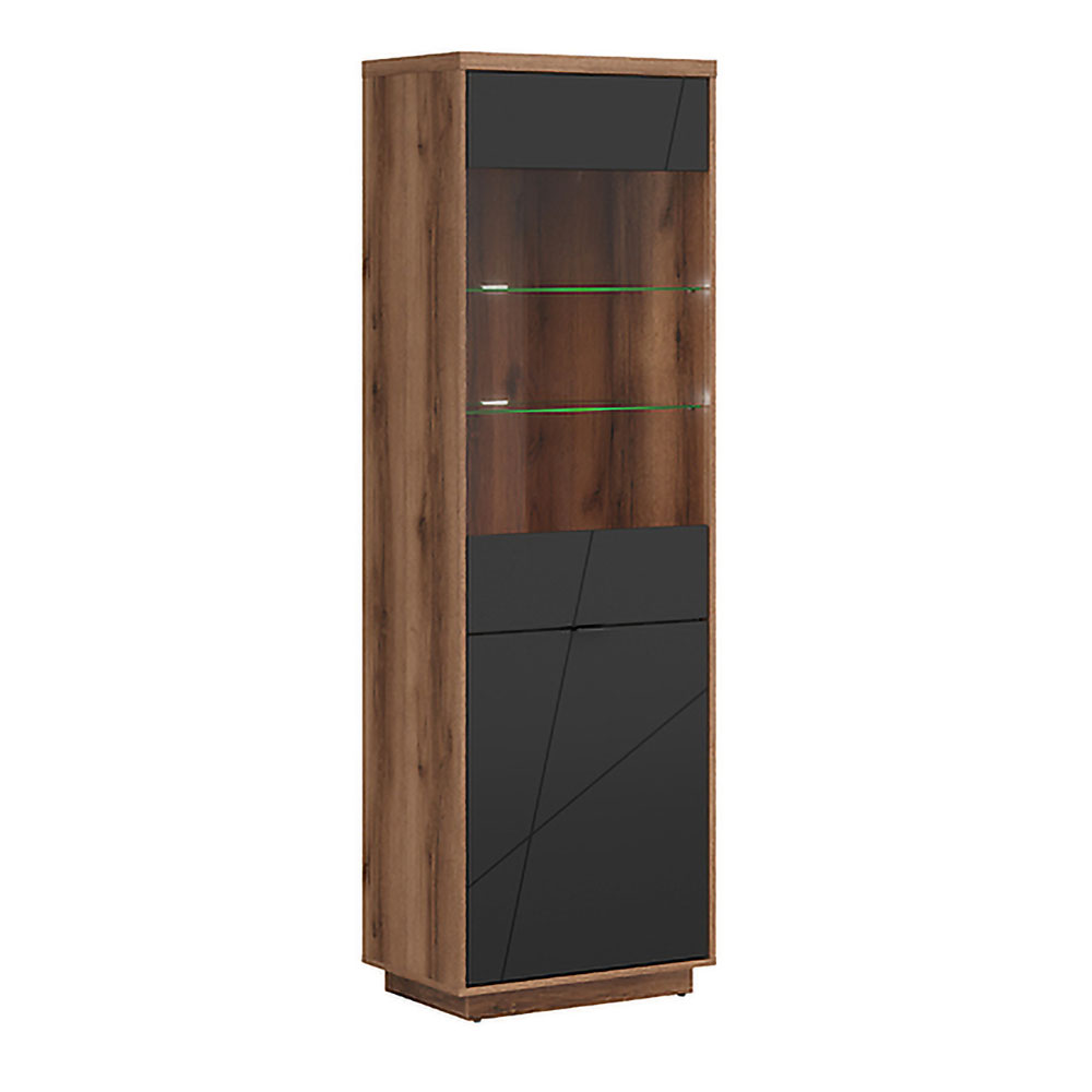 Висок шкаф витрина Форн в цвят дъб делано и черен мат