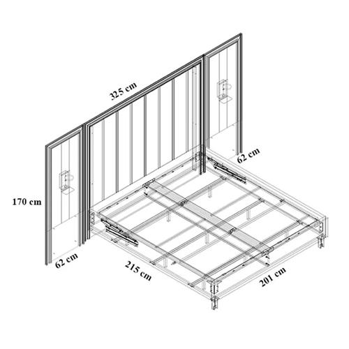 - Размер 2 с борд: 325 х 215 х 170 см (за матрак 180 х 200 см)
