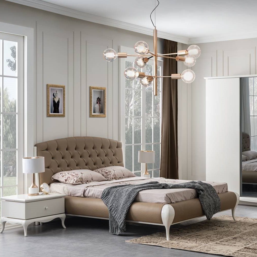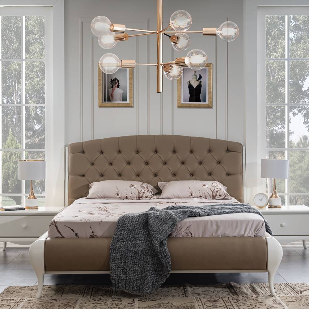 Тапицирано легло с дамаска в цвят крем (4 размера)