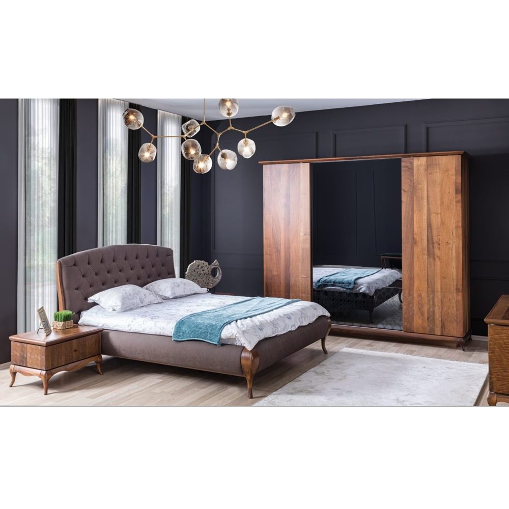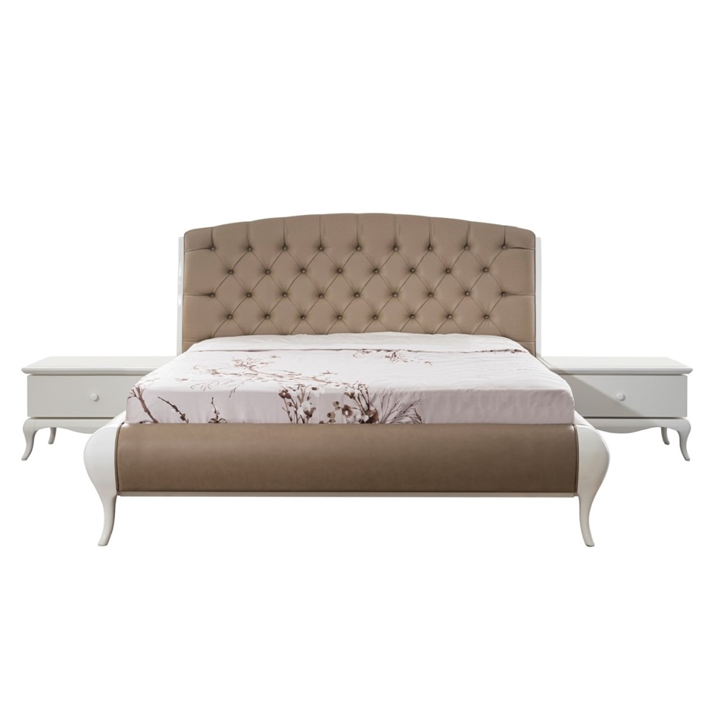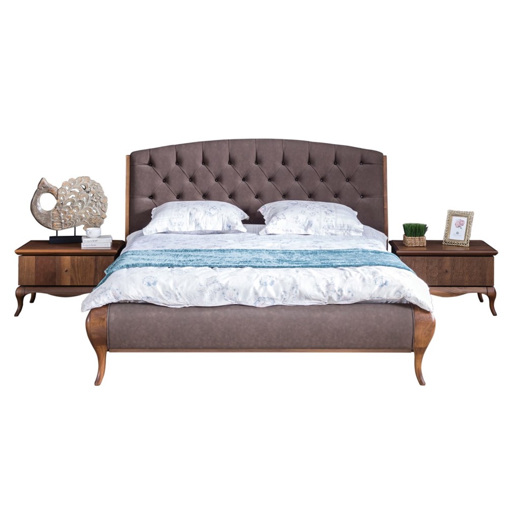 Бялото легло е тапицирано с еко кожа, а това в цвят орех е с текстилна дамаска.