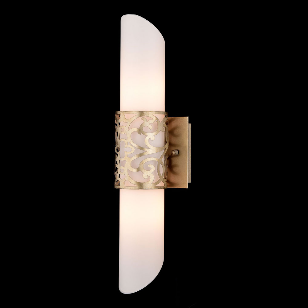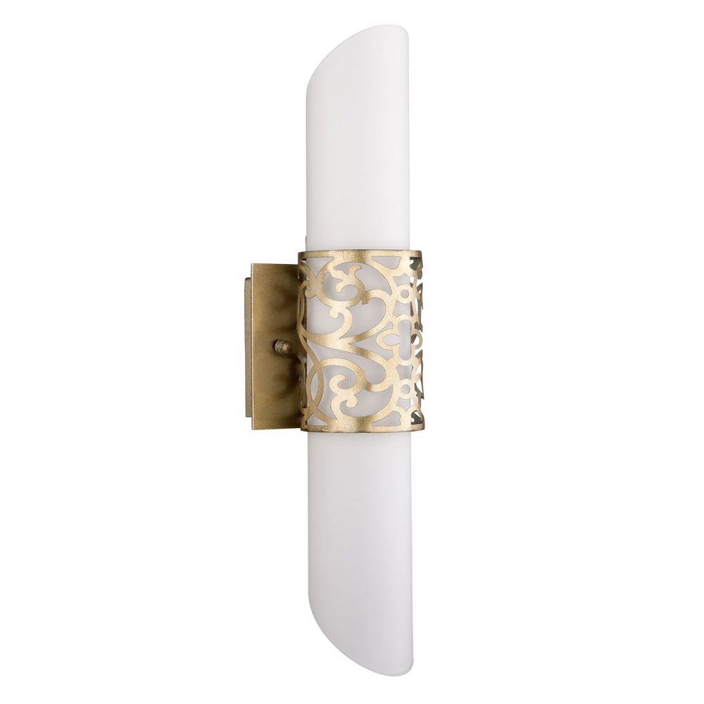 Аплик с бяла текстилна шапка, метална основа и декоративна решетка в цвят месинг Maytoni, серия Venera.