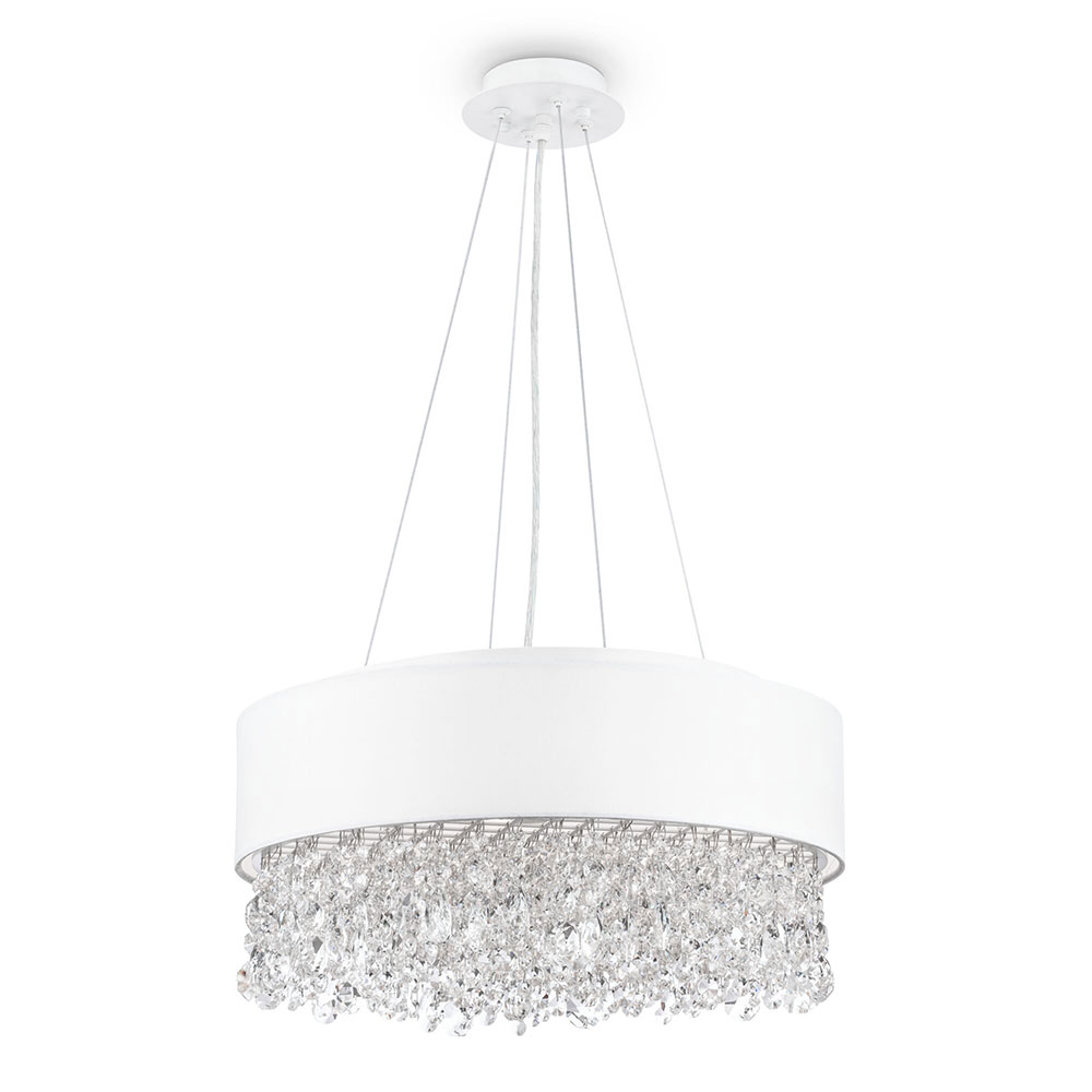 Текстилен пендел с бяла шапка, кръгла метална основа и множество кристални висулки Maytoni, серия Manfred.