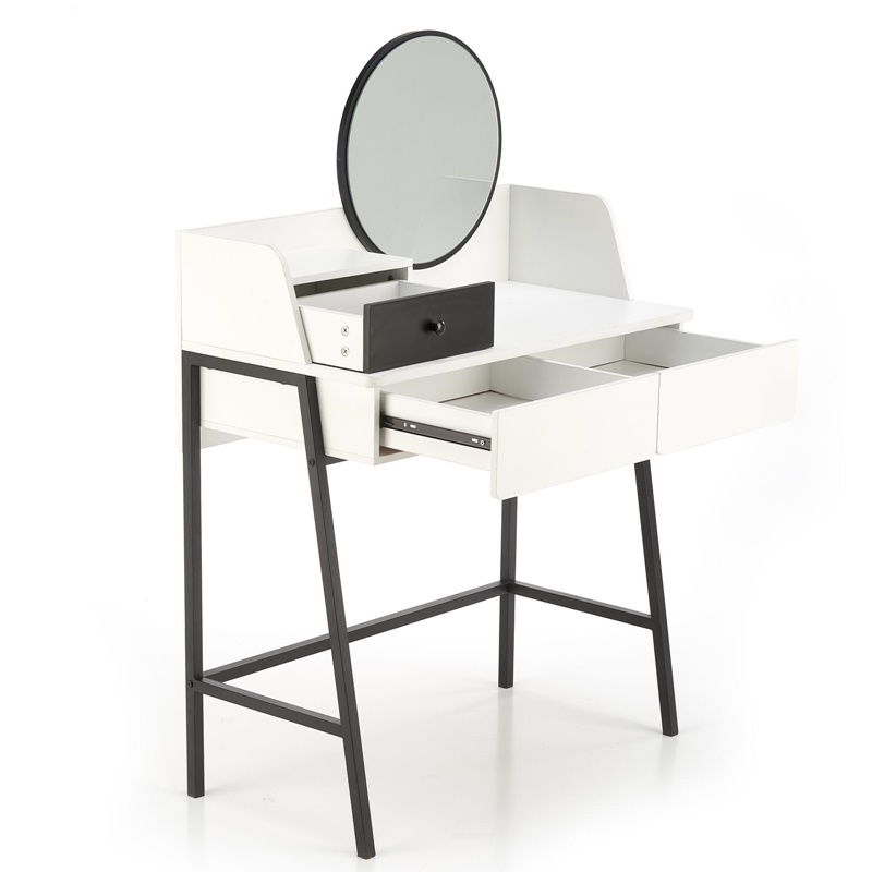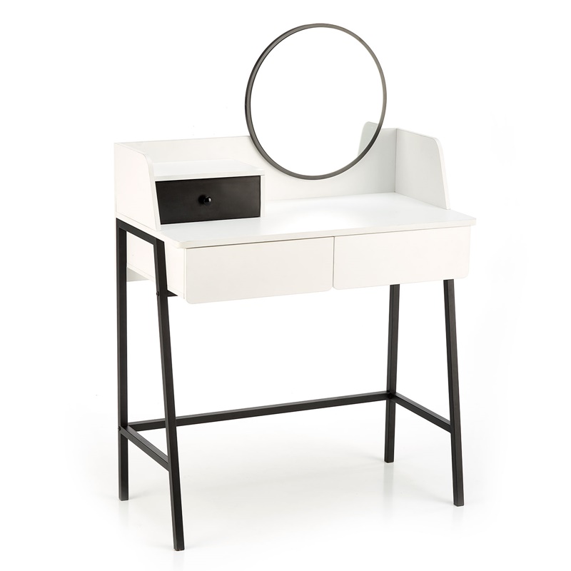 Модерна тоалетка с огледало и чекмеджета в бяло и черно