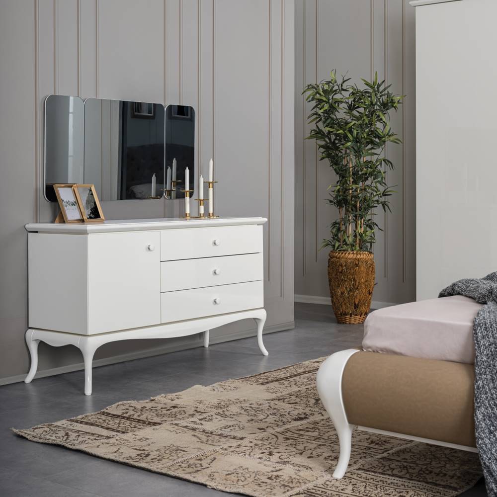 Тоалетка с три чекмеджета шкаф и огледало ( 4 варианта) - бяла