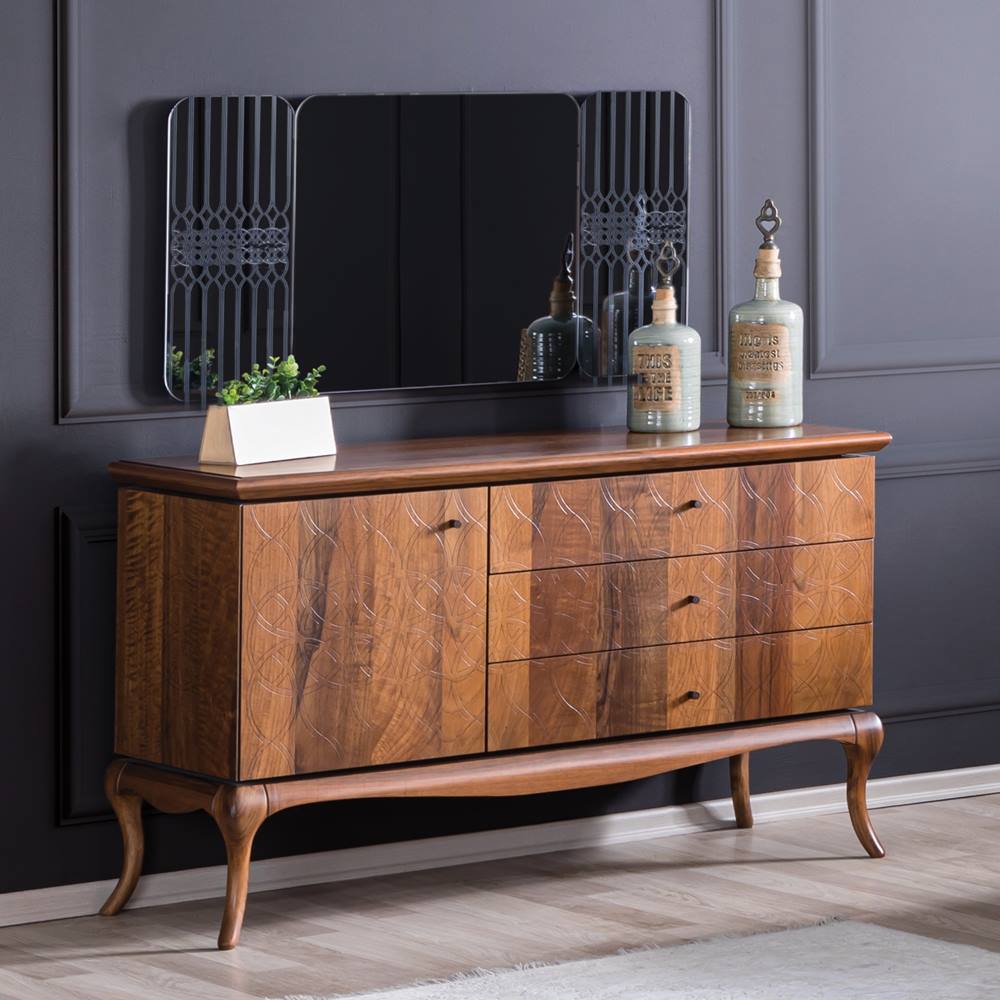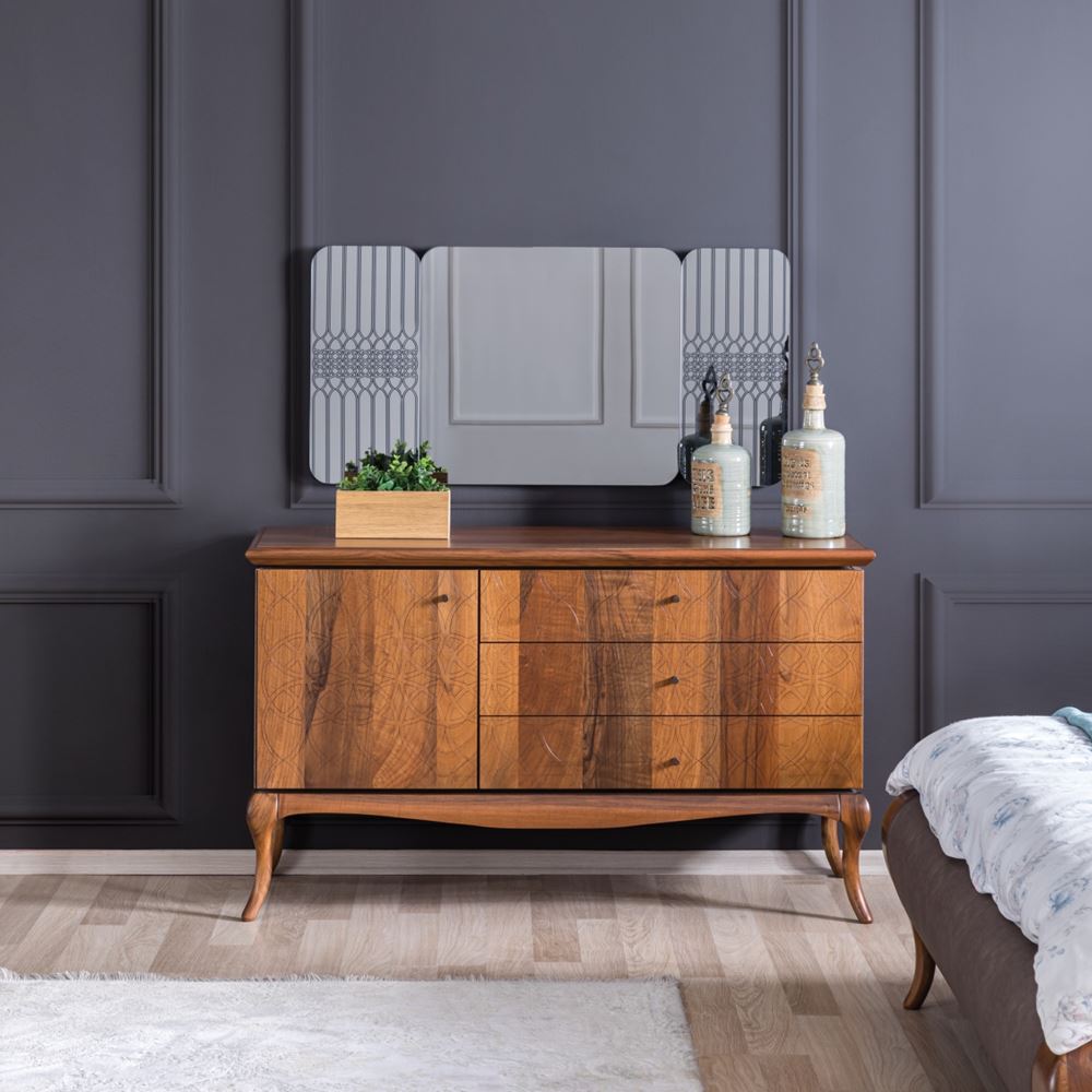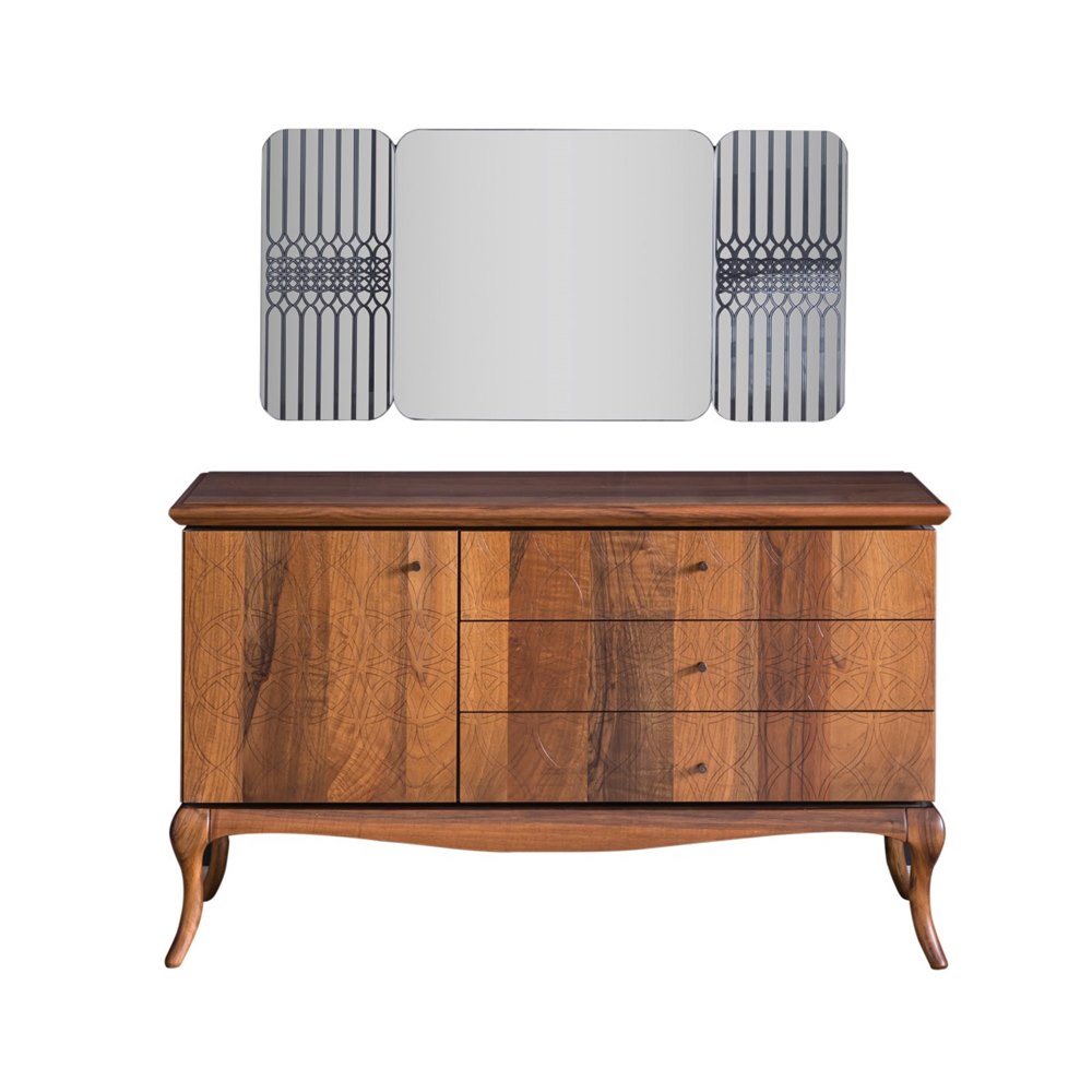Тоалетка с три чекмеджета шкаф и огледало ( 4 варианта) - орех