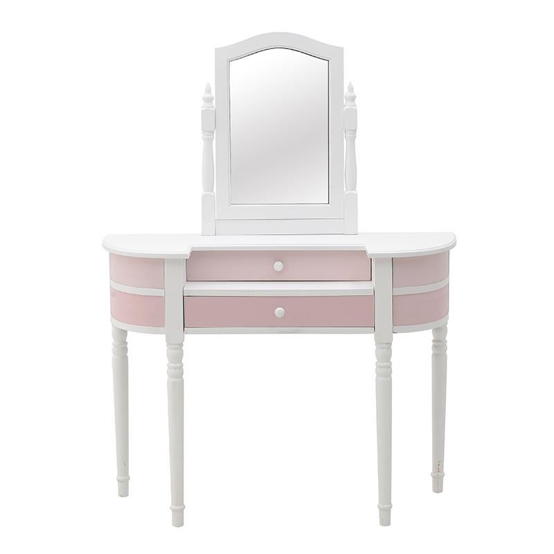 Нежна тоалетка с огледало и две чекмеджета в розово и бяло от серия Pink.