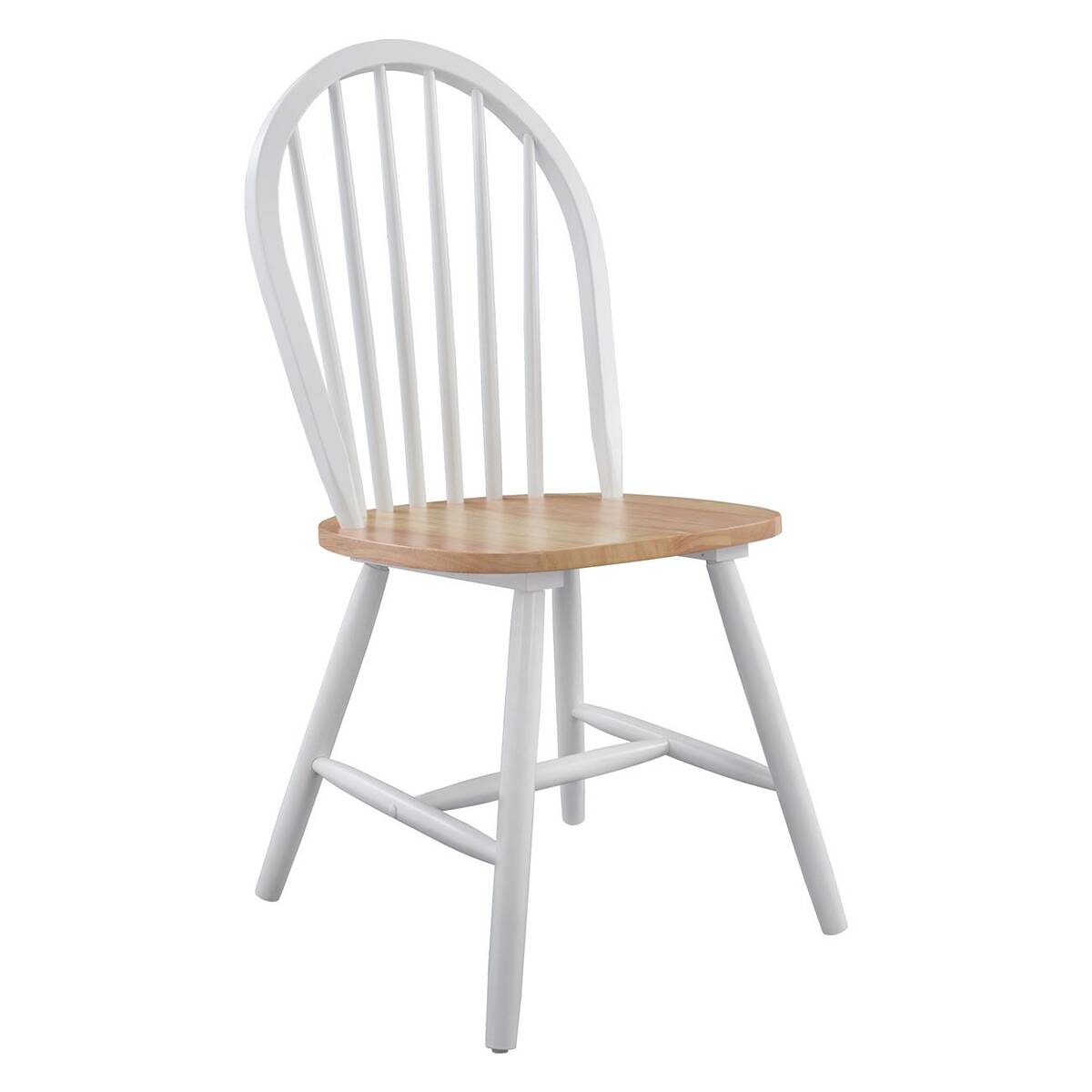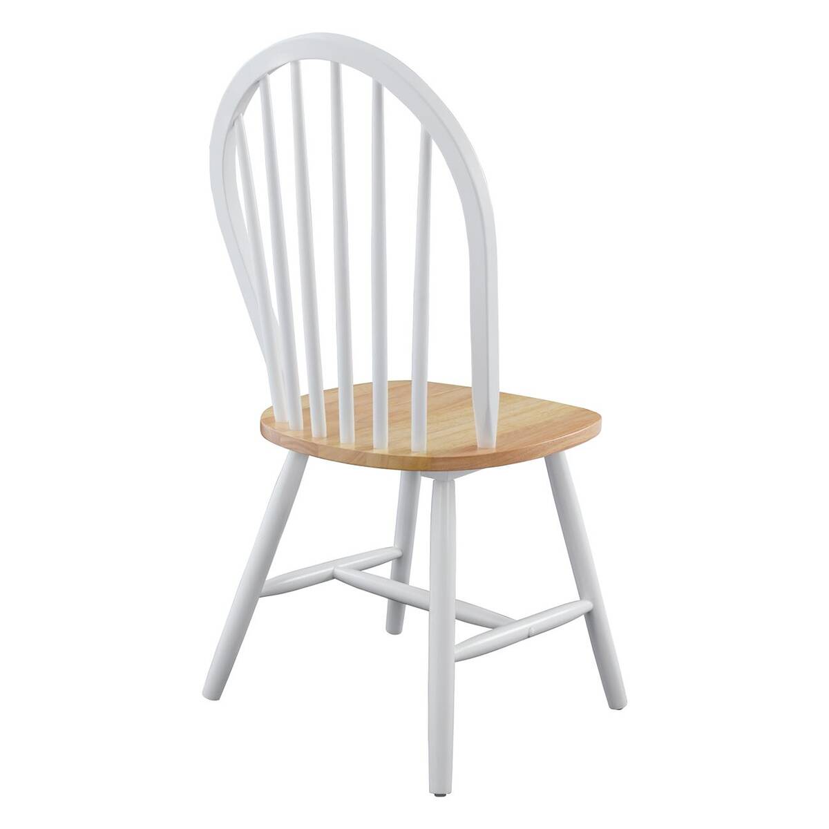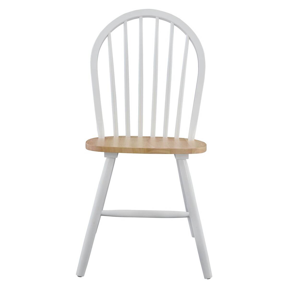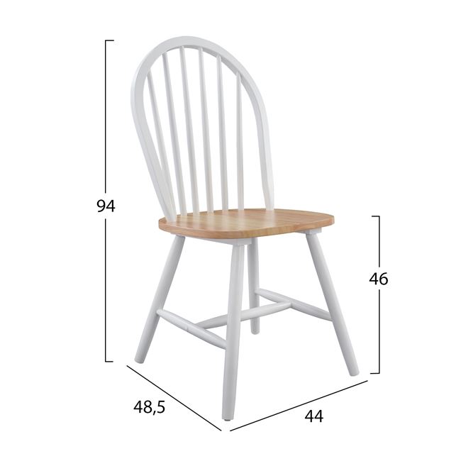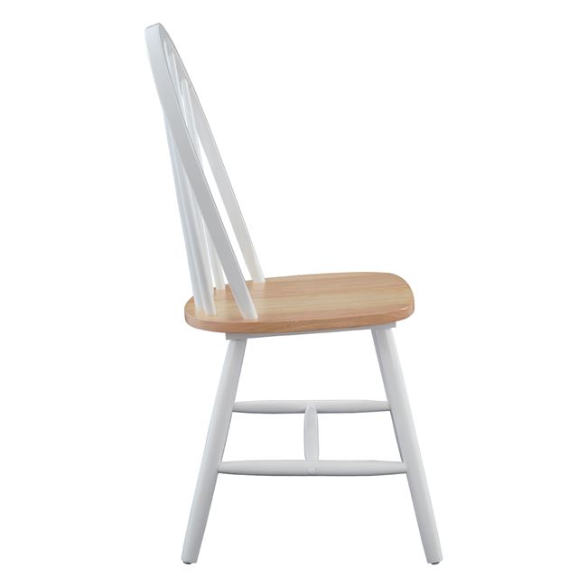 Трапезният дървен стол е изработен от дървена конструкция в бяло, с овална облегалка и седалка в натурален цвят.