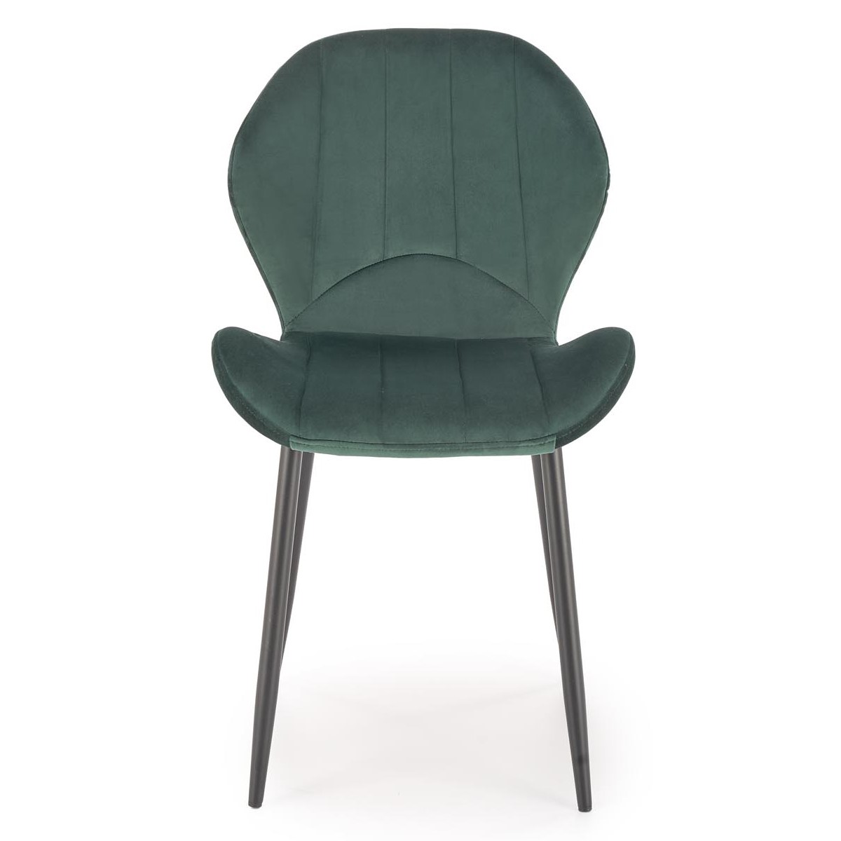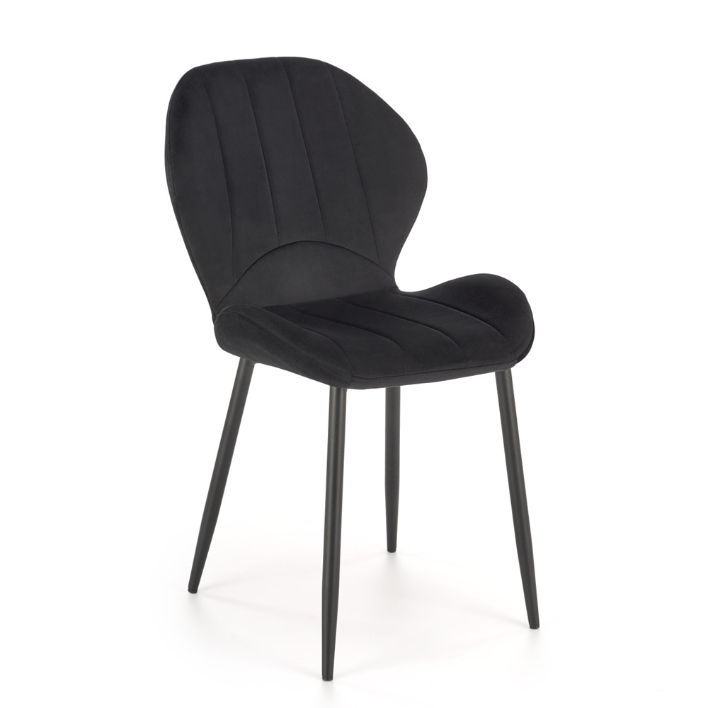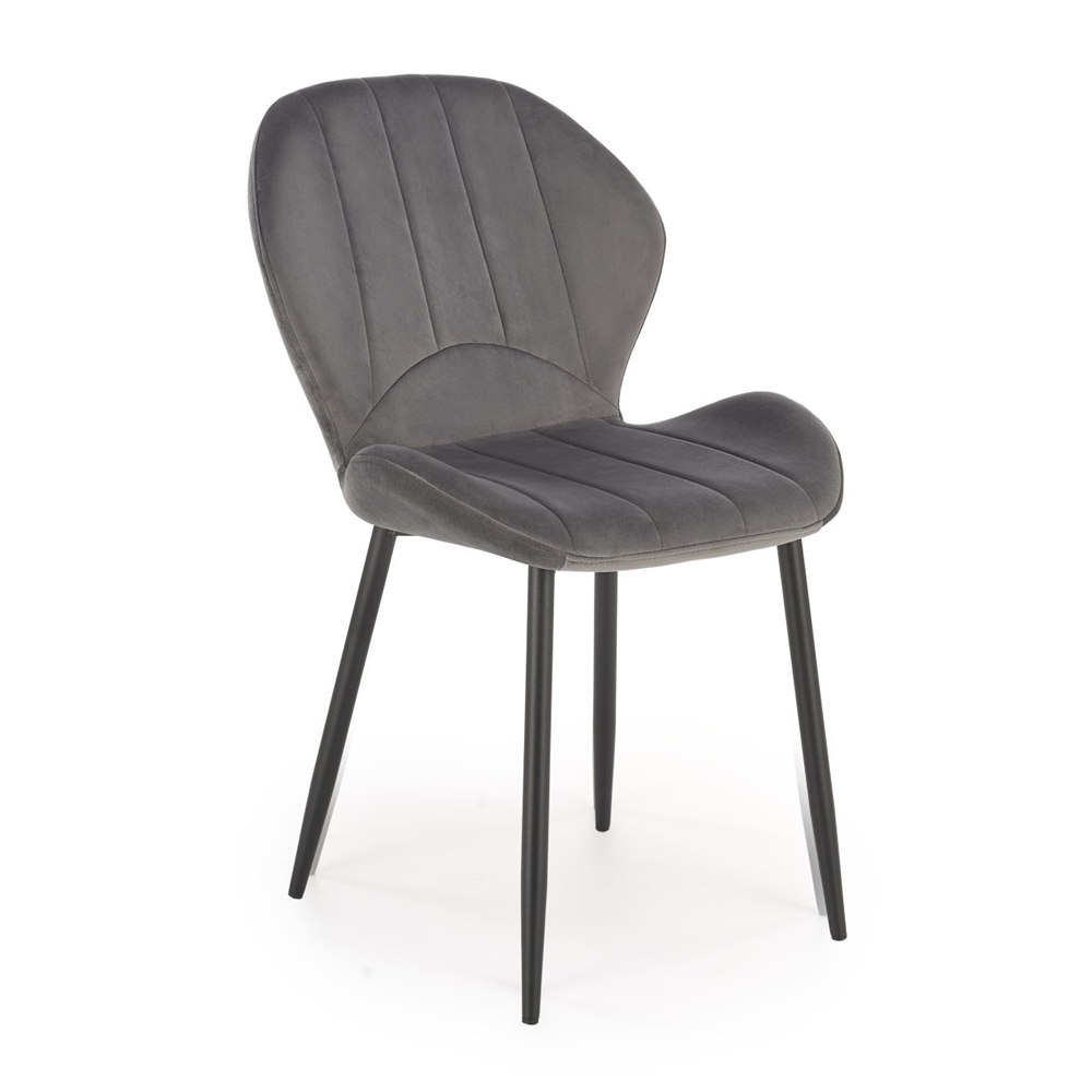 Трапезен стол с цветна дамаска и черни крака, изработен от текстил и праховобоядисана стомана.
