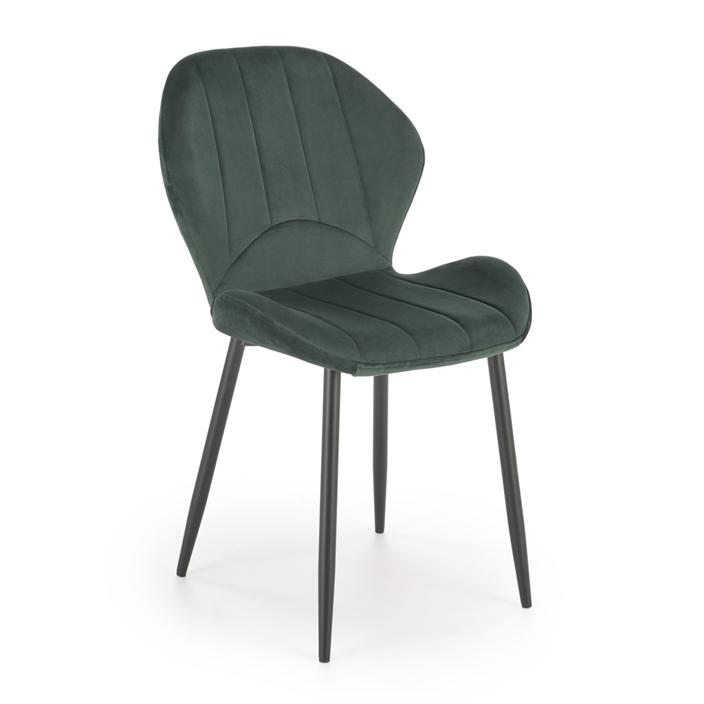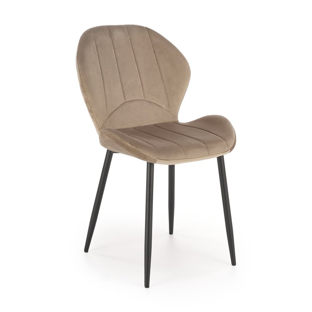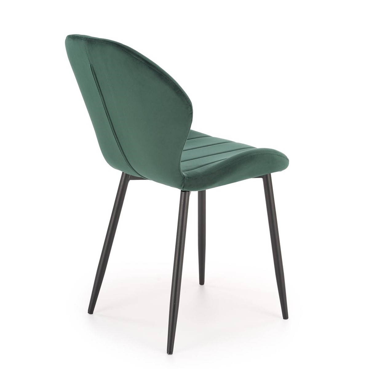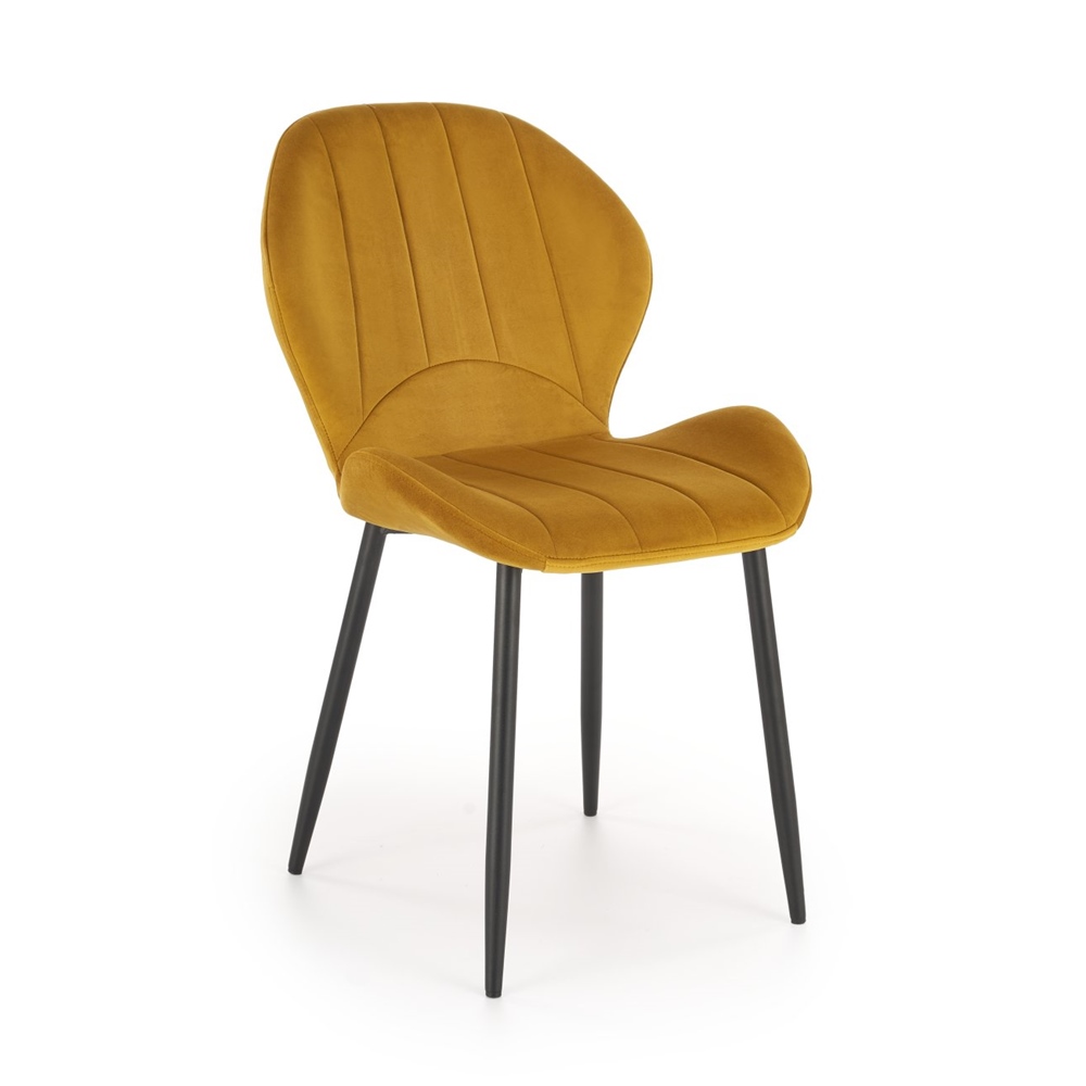 Трапезен стол с цветна дамаска и черни крака, изработен от текстил и праховобоядисана стомана.