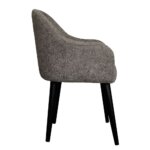 Трапезен стол, изработен с удобни подлакътници, черни дървени крака от масив и текстилна дамаска в сив или бежов цвят.