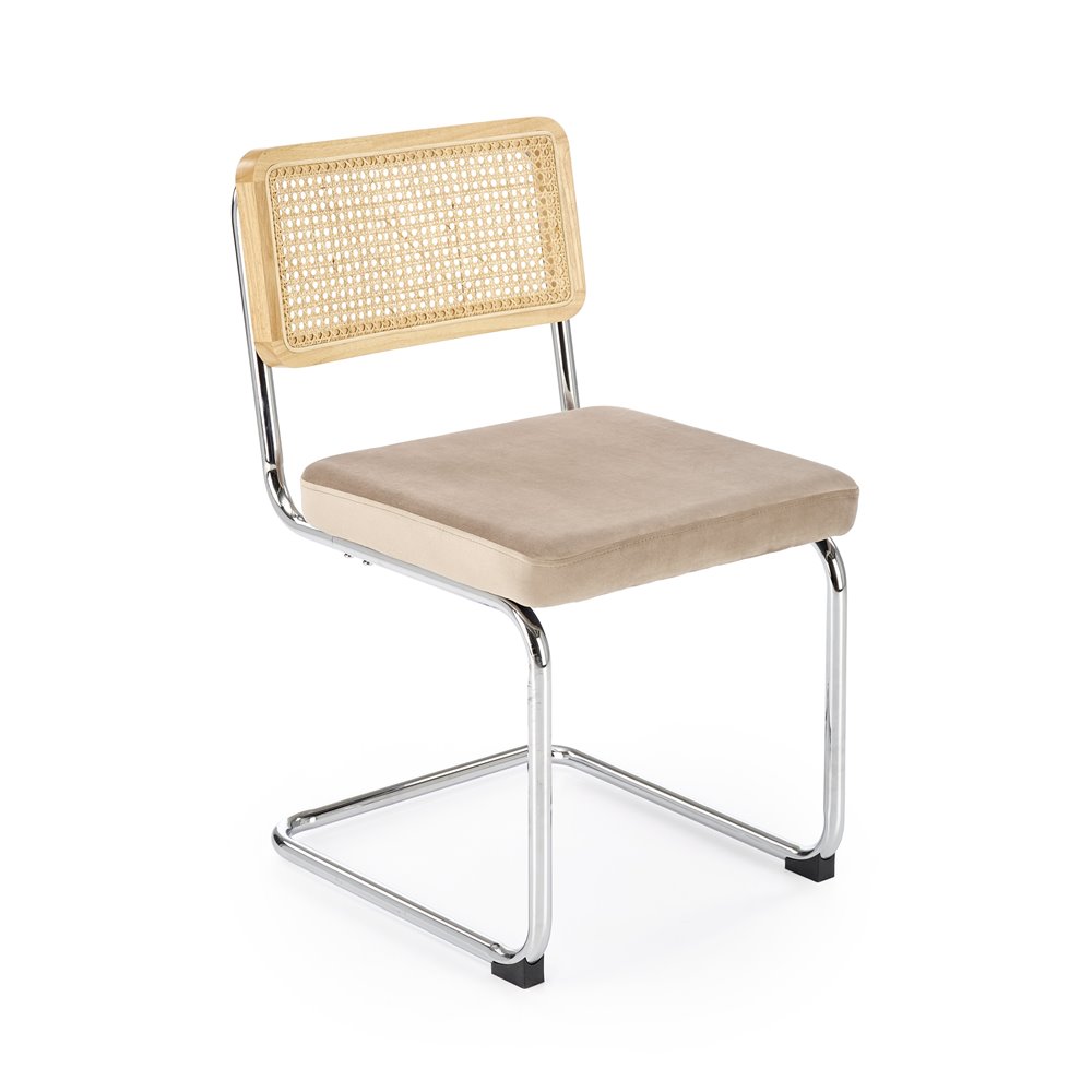 - Материал: масивно дърво (каучук), ратан (синтетичен), текстил (кадифе), стомана (хромирана)