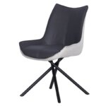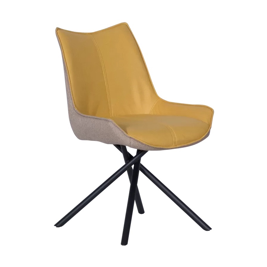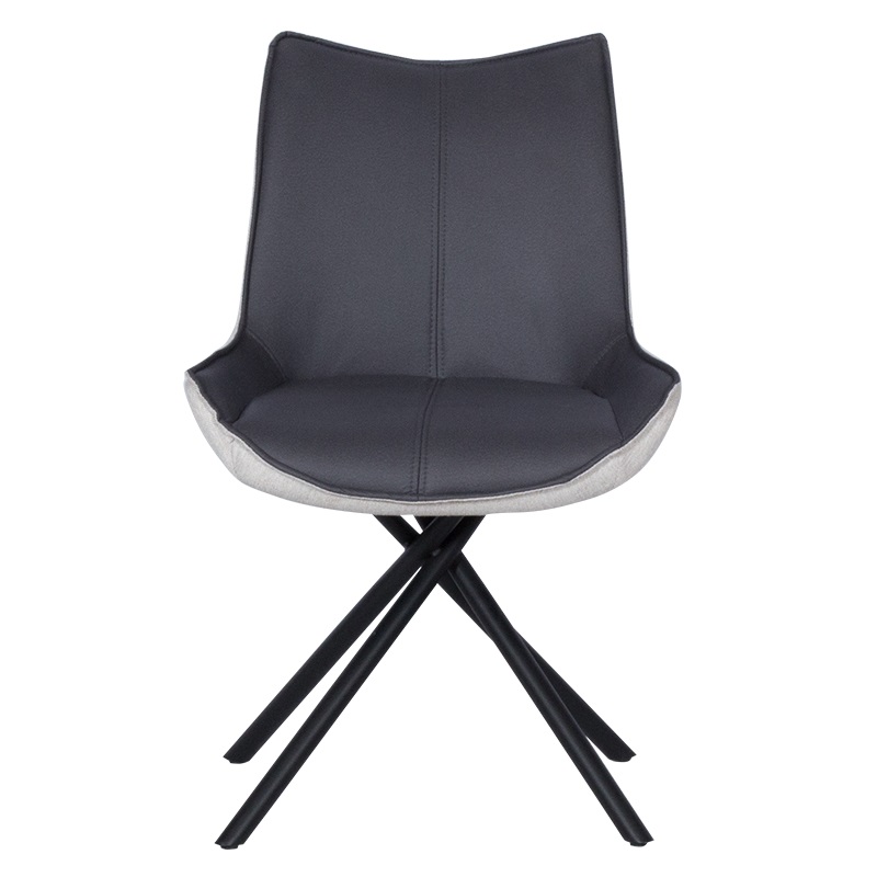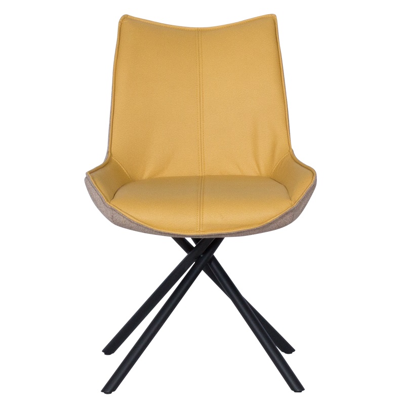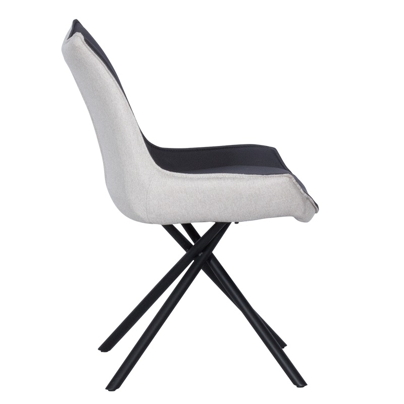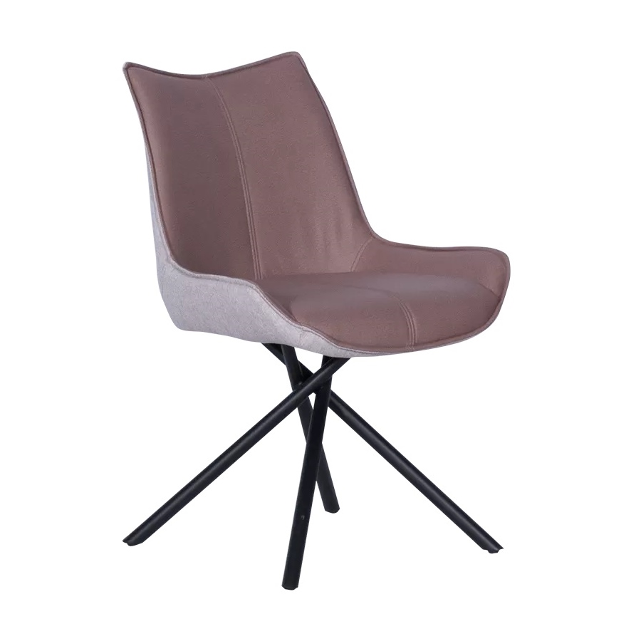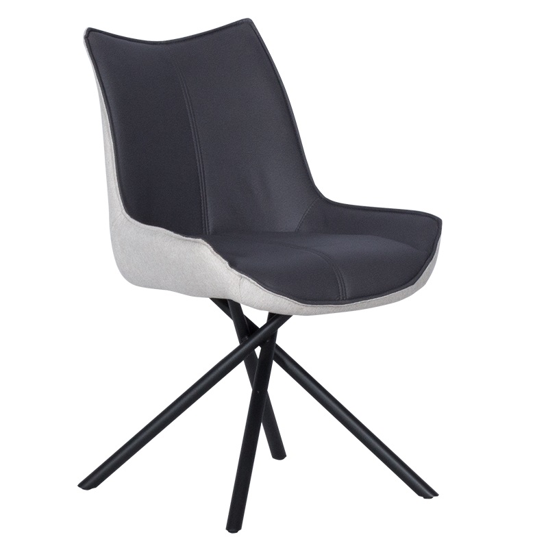 Стилен трапезен стол, изработен с двуцветна дамаска и нестандартни метални крака в черен мат.