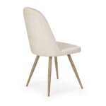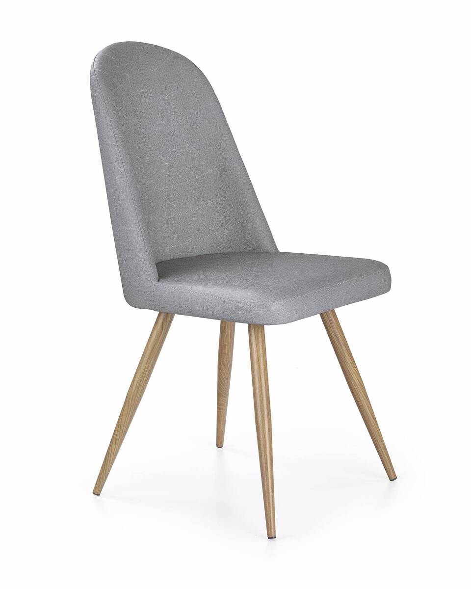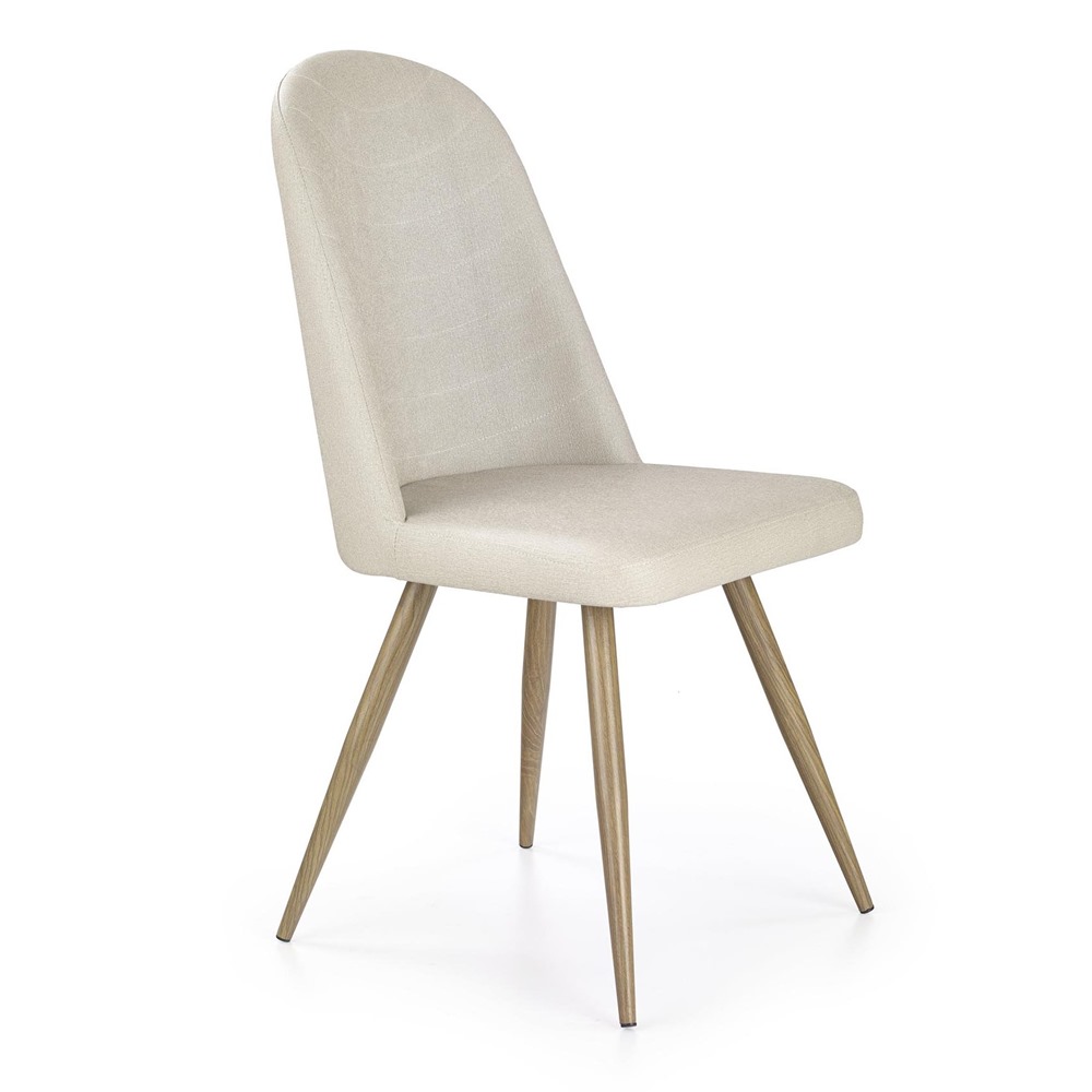 Трапезен стол от еко кожа с метални крака, боядисани в цвят меден дъб и с дамаска в тъмен крем или сиво.