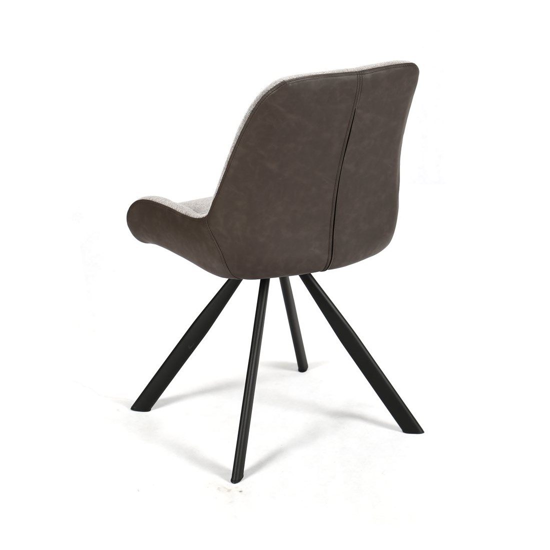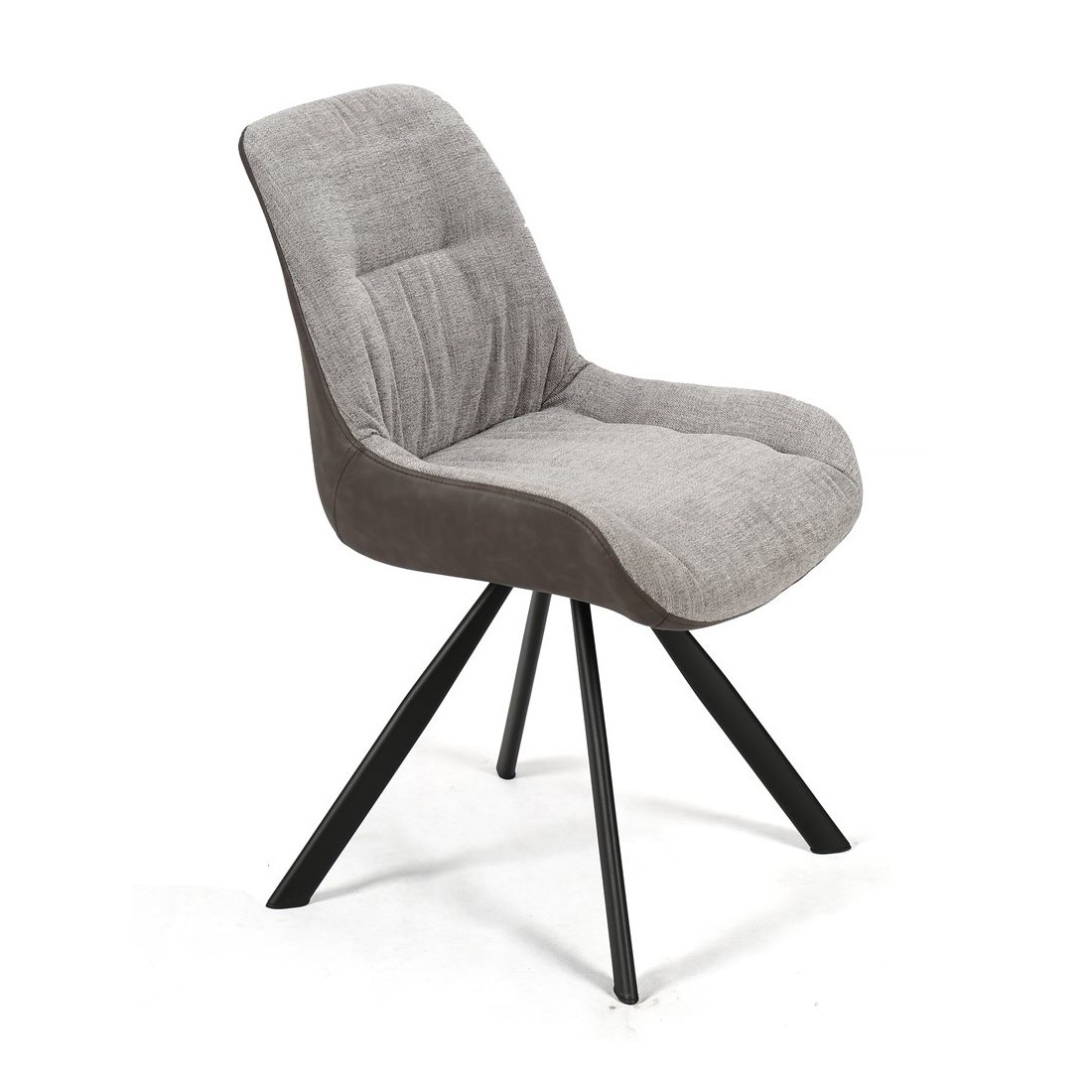 Мек трапезен стол с дамаска от еко кожа и текстил и с метални крака.