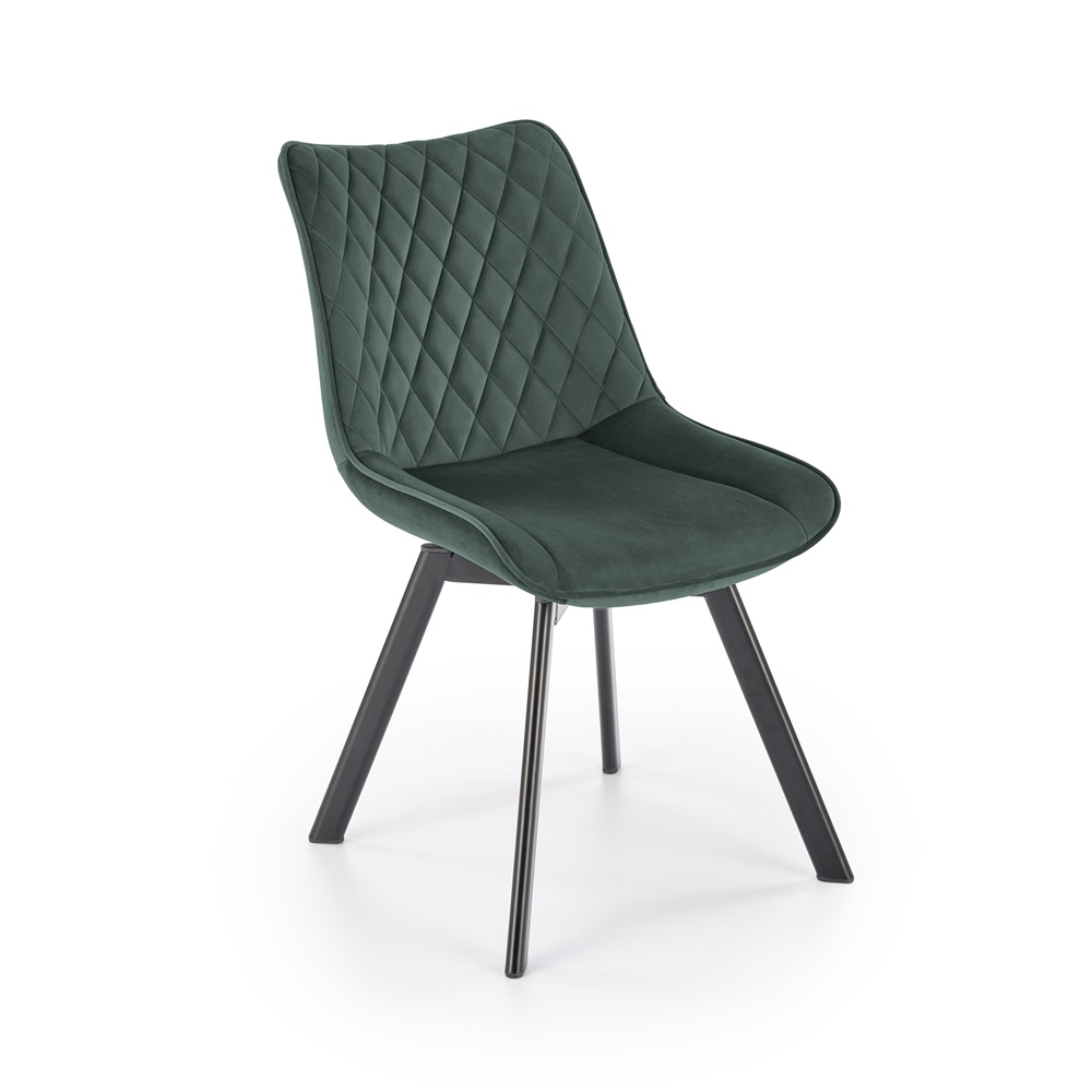 Красив трапезен стол с мека текстилна дамаска в шест цвята – тъмнозелен, сив, черен, оранжев, горчица и син.