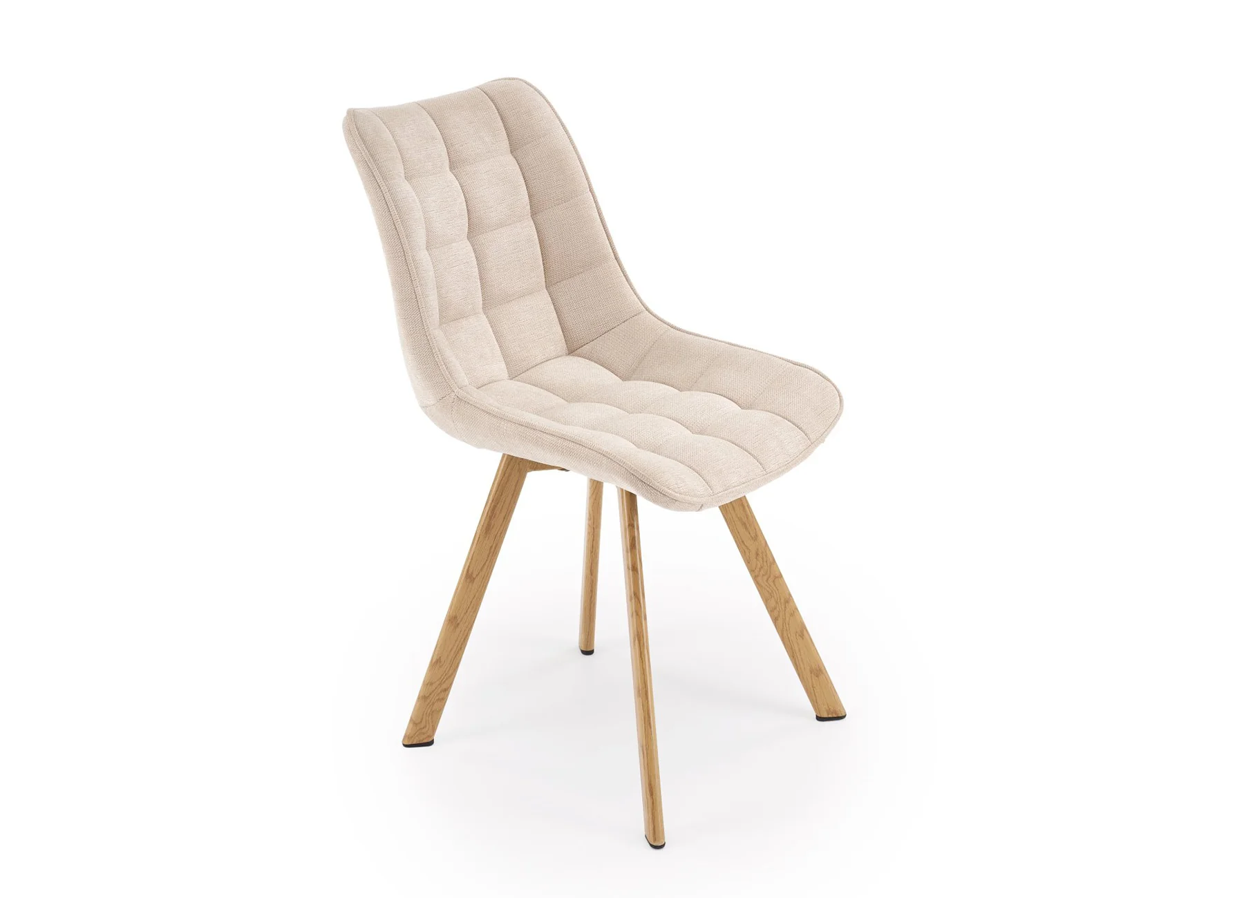 Седалката и облегалката са удобни, тапицирани с приятна на допир дамаска. Конструкцията от прахово боядисана стомана в натурален дървесен цвят гарантира устойчивост при ежедневна употреба.