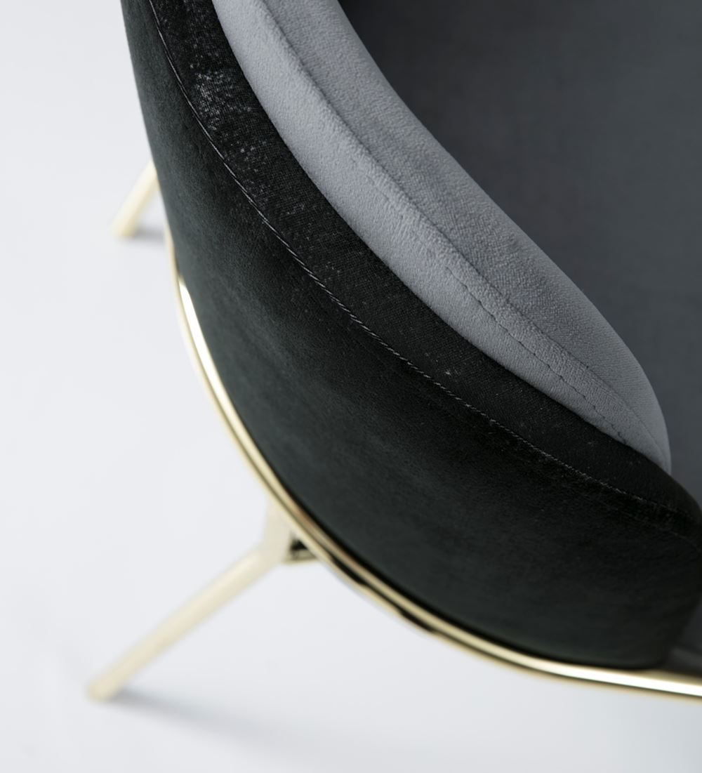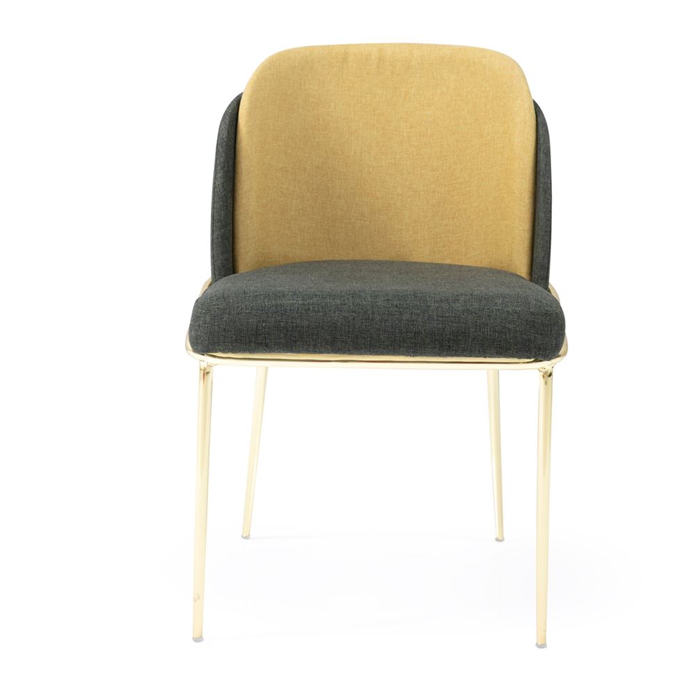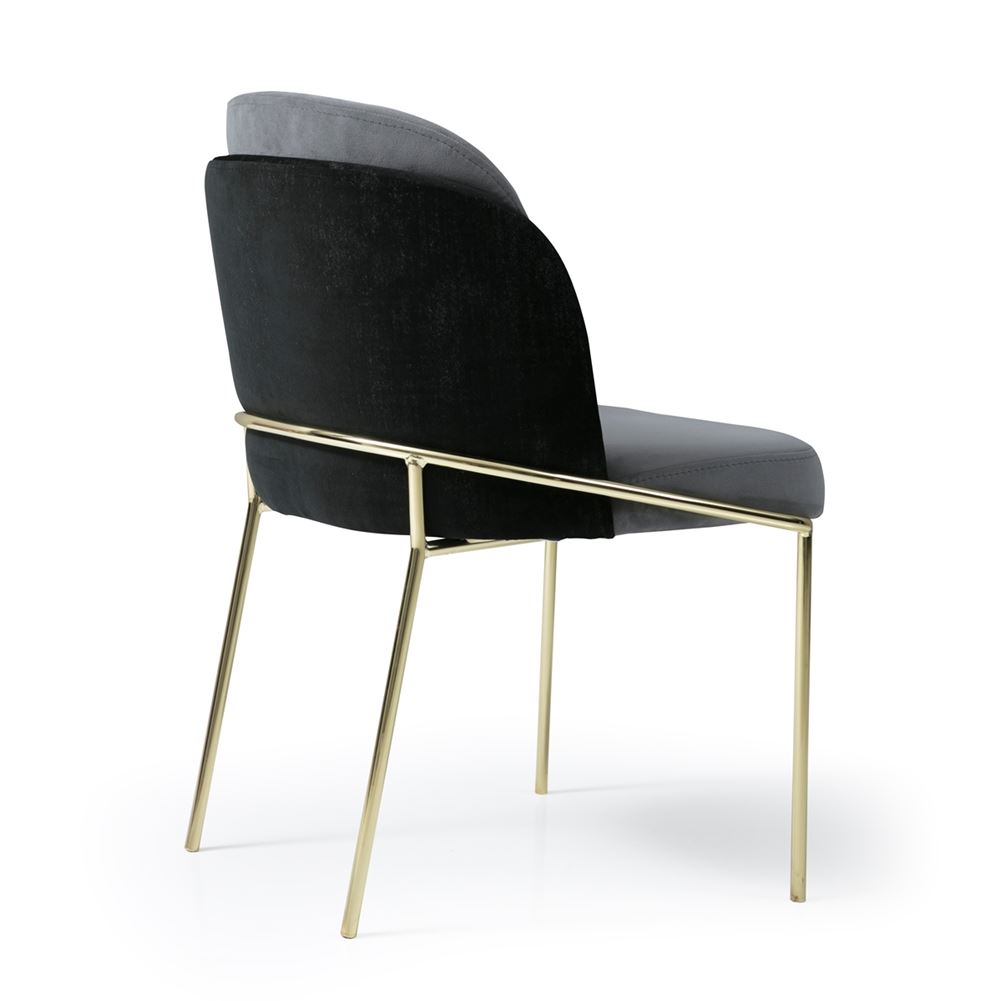Трапезен стол метални крака в златисто и седалка с овална облегалка, тапицирани с мека текстилна дамаска.
