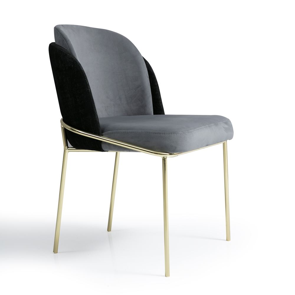 Трапезен стол със сива дамаска и метални крака (5 цвята)
