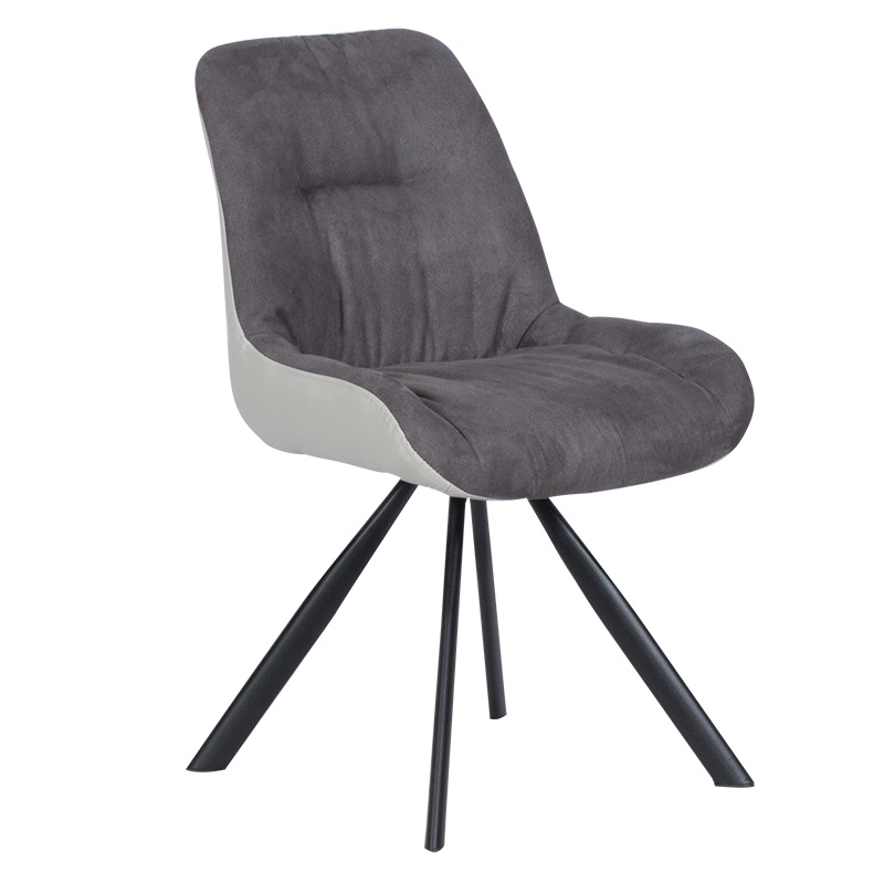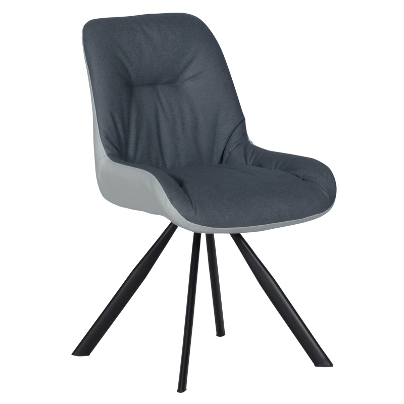 Модерен трапезен стол, изработен с метални крака в черно и двуцветна дамаска.