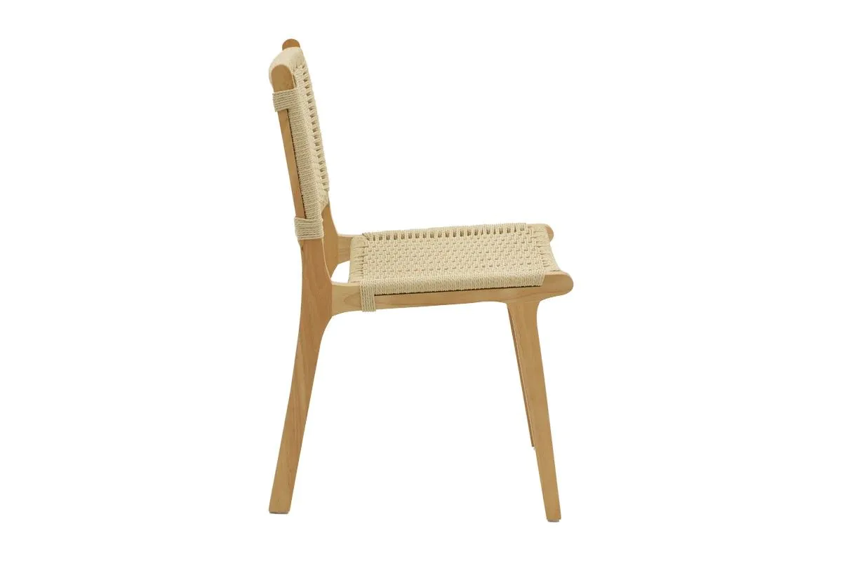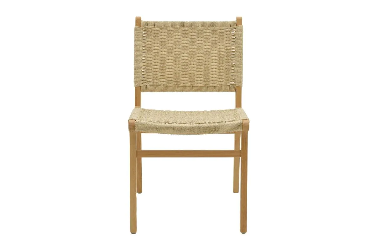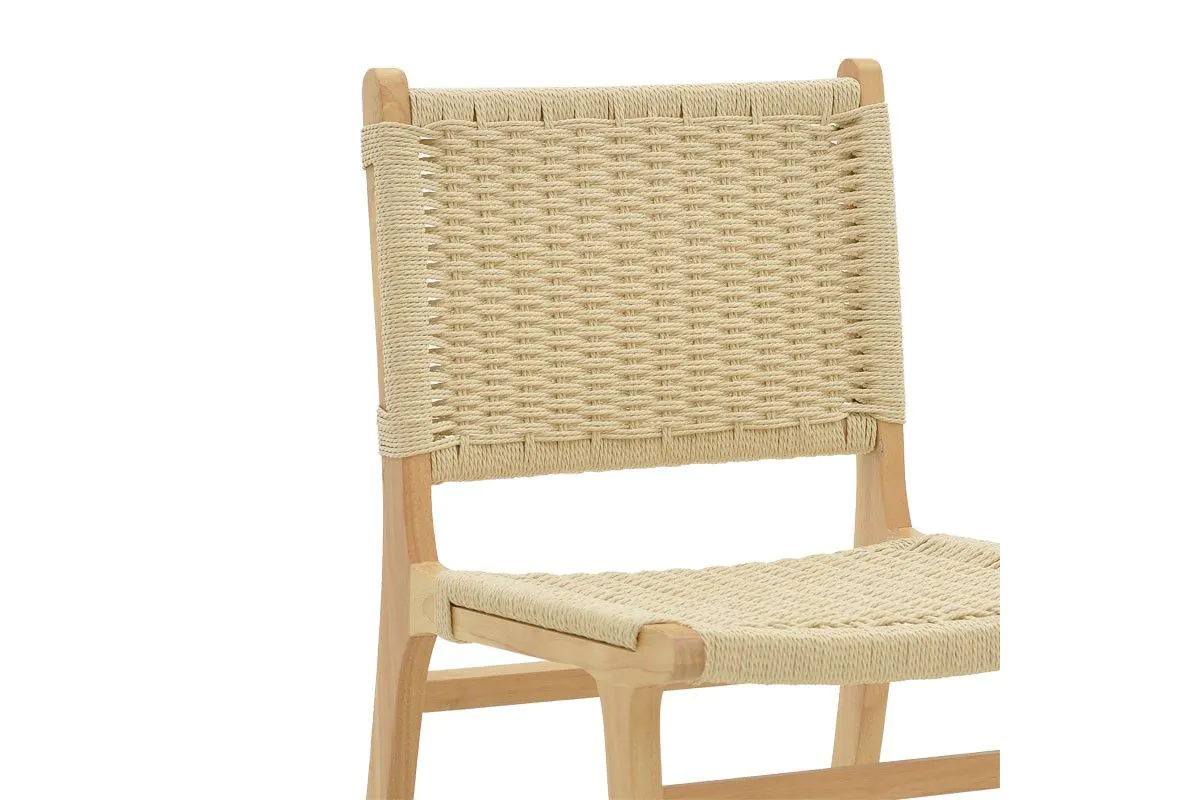 Седалката и облегалката, обвити в здраво въже, придават текстура и комфорт.