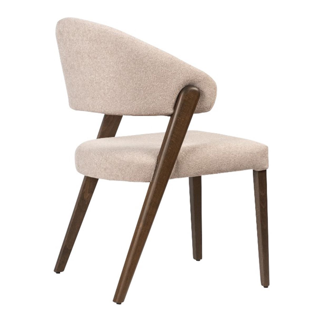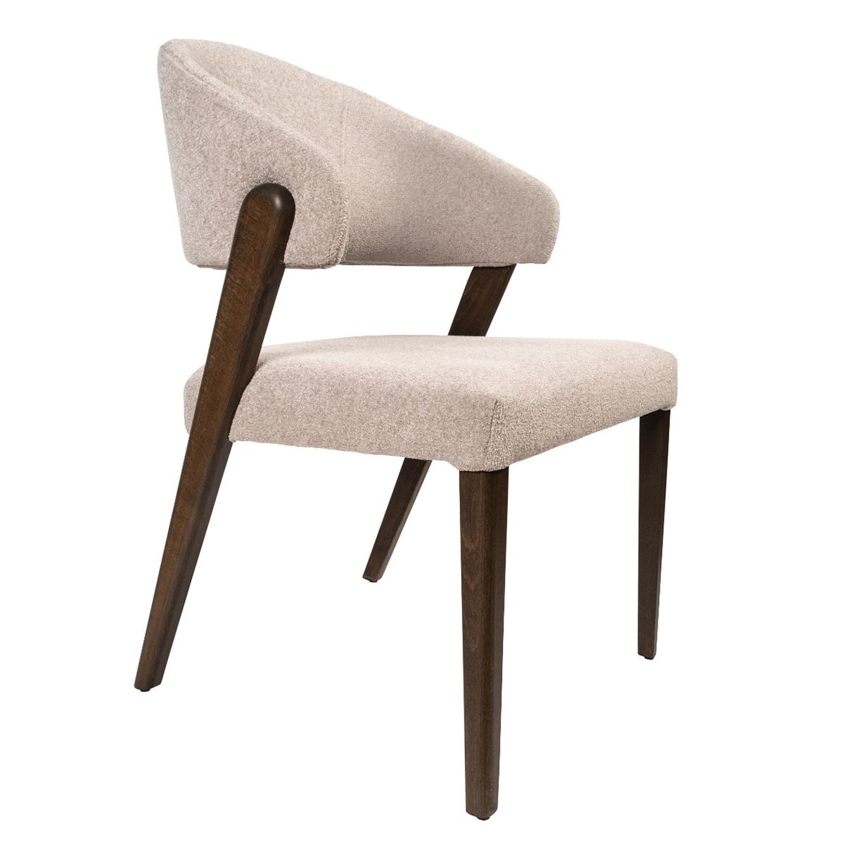 Здравата конструкция от масив осигурява стабилност, а меката тапицерия в топъл бежов нюанс гарантира комфорт дори при дълги вечери около масата. Контрастът между светлата дамаска и тъмните крака придава изтънченост и стил, които лесно се вписват във всякакъв интериор – от класически до съвременен.